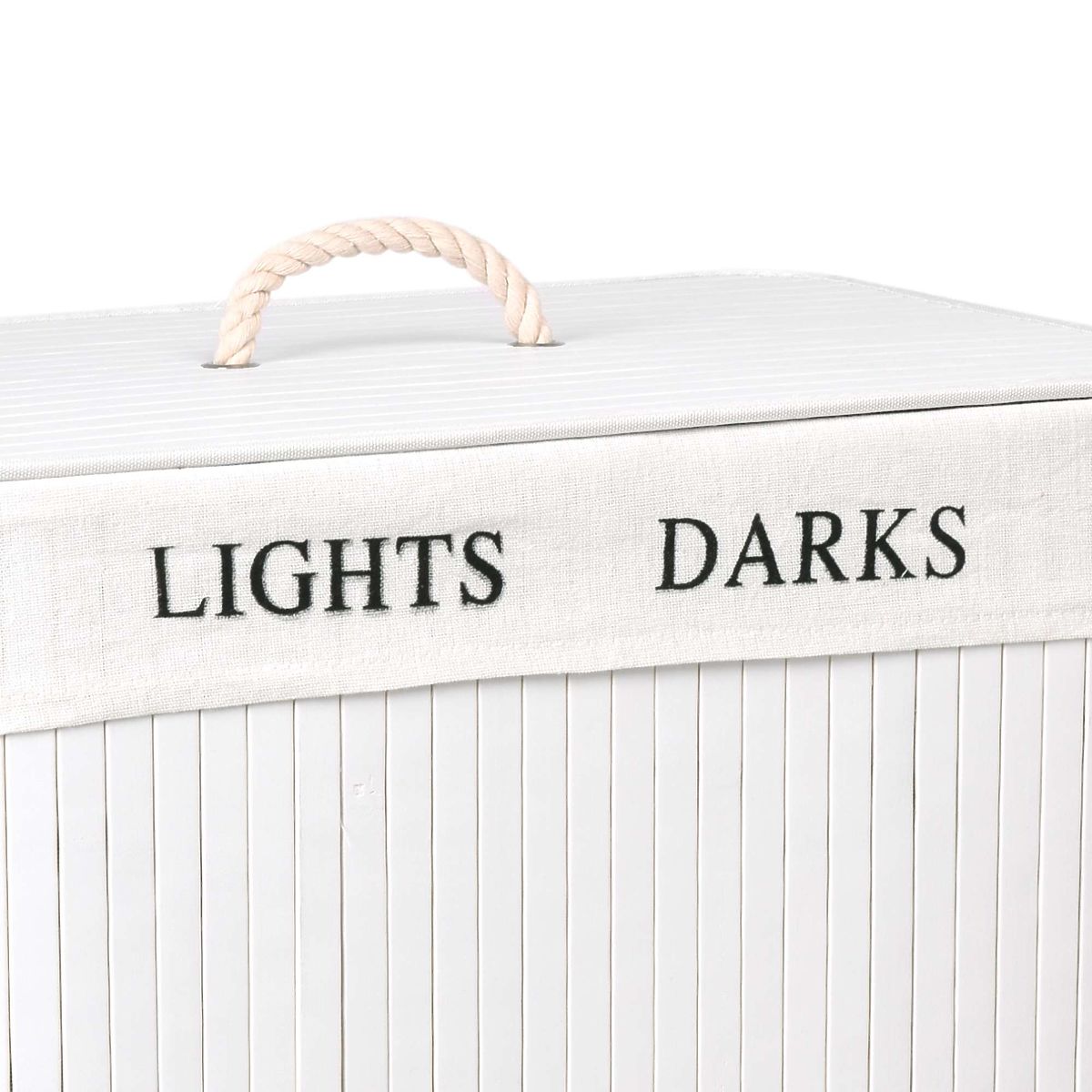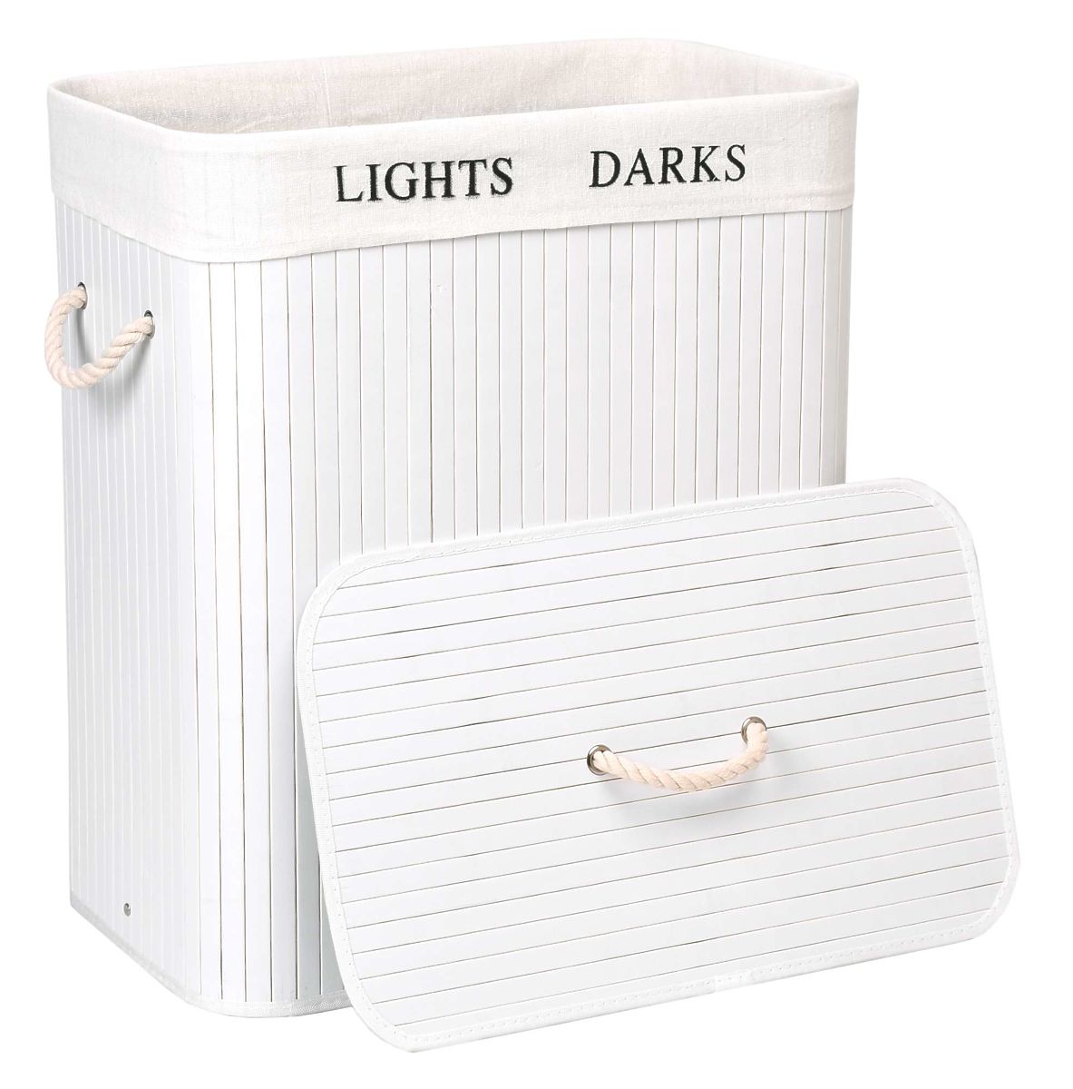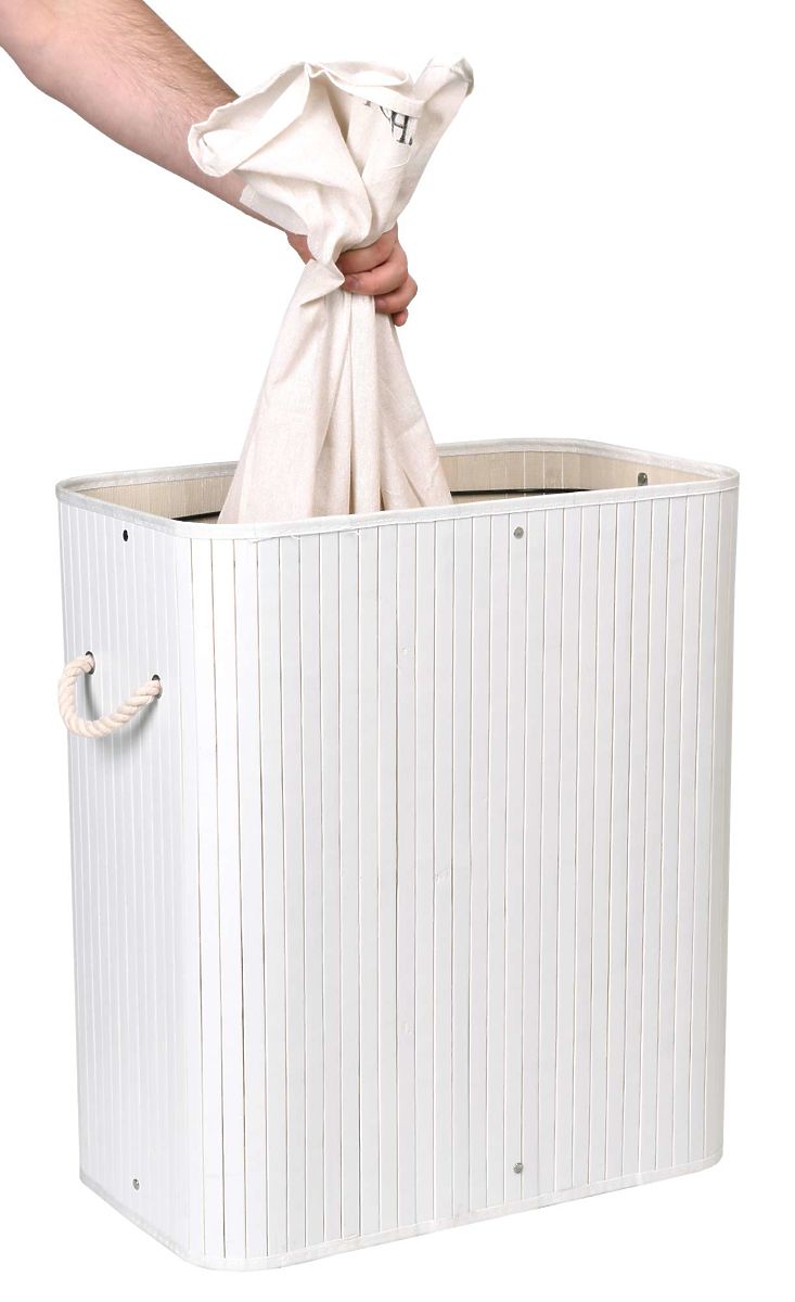 49102-0 Bamboo Laundry Basket with Lid 100L 2 Compartments White