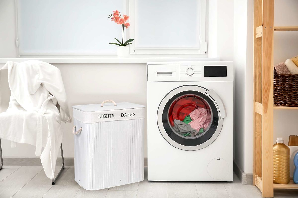 Stylish bamboo laundry basket with 100L capacity and two compartments. .. more
