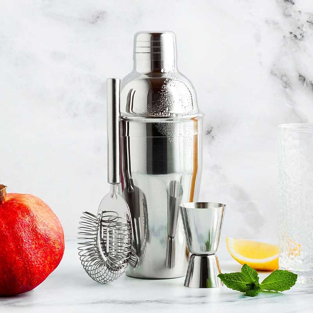 Bartender Set 5 Pieces Aberdeen Purpose: preparation of drinks, shakes, cocktails | Shaker: 500 ml ✅Made of stainless steel ✅Shaker with large capacity ✅Easy cleaning in dishwasher ✅Great gift idea The bartender set consists of five elements made of stainless steel. This allows for preserving the authentic taste of the ingredients used in the drink. Suitable for both professionals and amateur bartenders. With the tools included in the set, you can easily mix the right proportions of liquids and separate ice or larger pieces of fruit, creating amazing taste and visual compositions. The set can be easily washed in the dishwasher. It is a great choice for any kind of party or a night for two. Product Features Made of stainless steel Shaker with a capacity of 500 ml Solution for professionals and amateurs Dishwasher safe Great for a gift! Product Composition 1 x three-piece shaker 500 ml 1 x double-sided bartender measuring jigger 1 x bartender strainer 1 x stirrer with straw 1 x ice tongs Additional Information The presented colors are indicative - they may differ from the actual ones due to different monitor settings and photo editing processes. Actual dimensions may differ from those listed above. Error tolerance may be +/- 5%. Brand: Gockowiak Product Code: 5902340317259 EAN Code: 5902340317259 Color: chrome, silver Material: stainless steel Shaker capacity 500 ml Number of parts in the set: 5