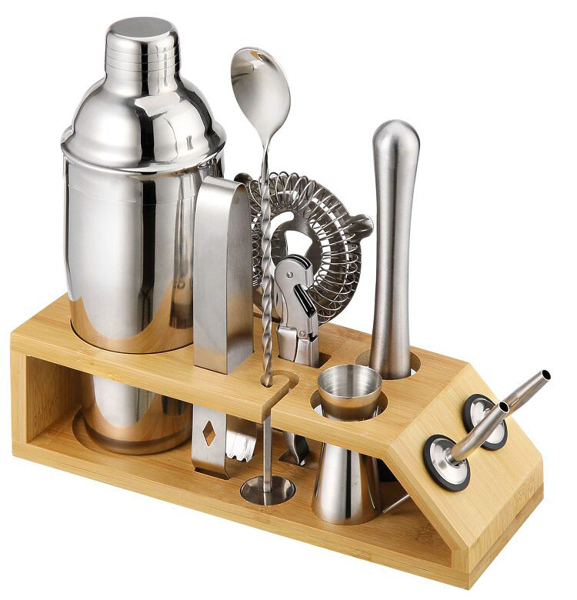 BRADFORD bartender set with bamboo stand and stainless steel accessories. .. more