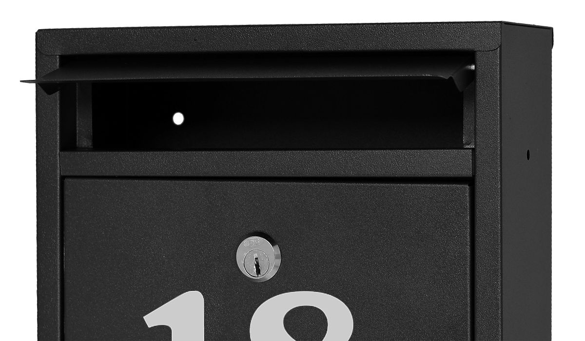 Gustav mailbox with customizable inscriptions and weather-resistant design. .. more