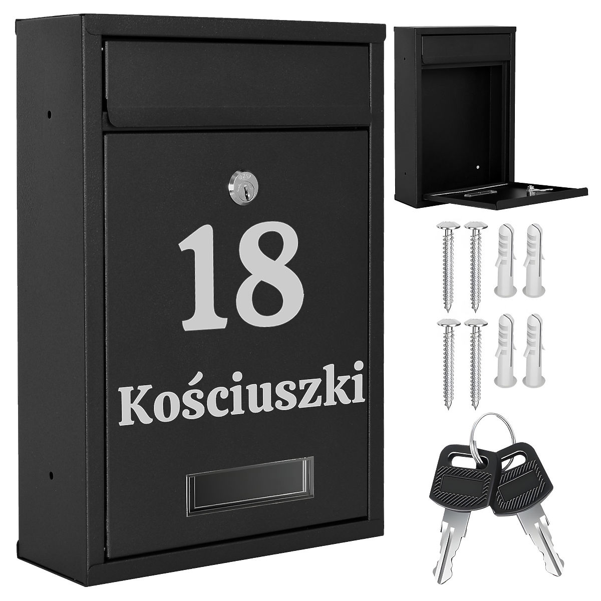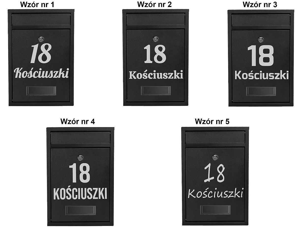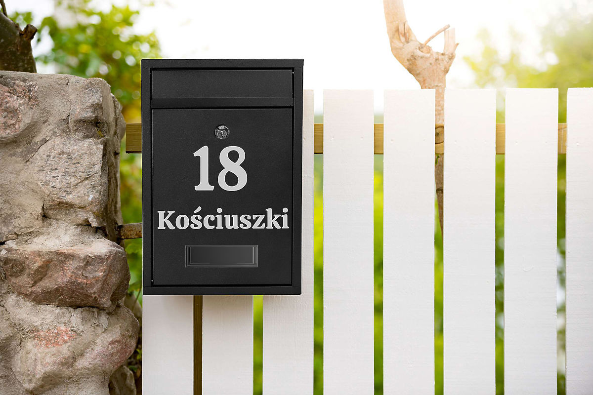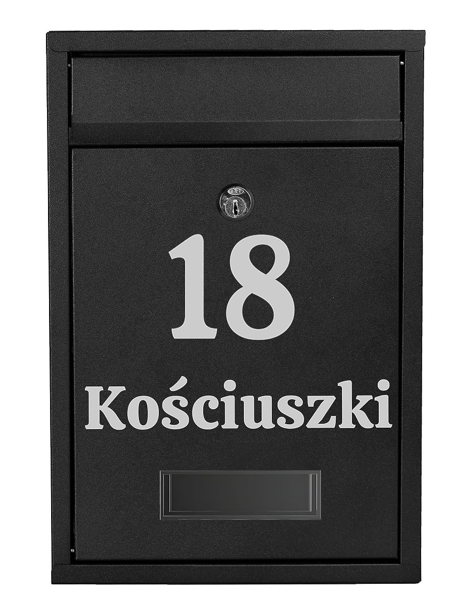Gustav Black Letter Mailbox with Inscriptions Color: Black ⭐Color: Black ⭐Galvanized Steel ⭐Address Window ⭐Lockable with Key A practical mailbox made of galvanized steel coated with powder paint. Modern and timeless style that cannot be overlooked. Besides its basic functions, the mailbox pleases the eye and will make your neighbors envious! Made from high-quality materials resistant to weather conditions, ensuring all correspondence is very well protected. Personalized Product Option to create any inscription: house number, company name, surname, street, etc. The inscription is made using Oracal foil plotter method, weather-resistant. The foil is silver in color. Product Features Galvanized Steel Weather Resistance Address Windows Indoor and Outdoor Mounting Lockable with Key Ventilation Holes Product Dimensions Height: 32 cm Depth: 8.5 cm Width: 21.5 cm Identification Window: 9 x 2.5 cm Slot: 17.5 x 3 cm Screw Spacing for Wall Mounting: 15.5 x 24 In the Package Mailbox 2 Keys Mounting Kit After purchase, provide us with instructions for personalizing your mailbox. After completing the purchase, specify in the message to the seller: chosen font pattern, inscription to be made. (example: pattern2, Kościuszki 18). The inscription will be made exactly according to the instructions from the message to the seller. Inscriptions can have only uppercase letters e.g. "KOŚCIUSZKI" or lowercase letters e.g. "cicha". The exception is pattern4, whose font has only uppercase letters. If the inscription is to be made with the street abbreviation "ul.", please also provide this information. Polish characters are allowed (e.g.: ę,ą,ć,ś etc.). Available Patterns: pattern1 pattern2 pattern3 pattern4 pattern5 Brand: Gockowiak Product Code: 5902340325544 Color: Black Overall Height: 32 cm Overall Width: 21.5 cm Overall Depth: 8.5 cm Material: Galvanized Stainless Steel Additional Information Please make a thoughtful purchase. Personalized products cannot be returned. The presented colors should be taken as indicative - they may differ from the actual ones due to different monitor settings and photo editing processes. Actual dimensions may differ from those listed above. Error tolerance may be +/- 5%.