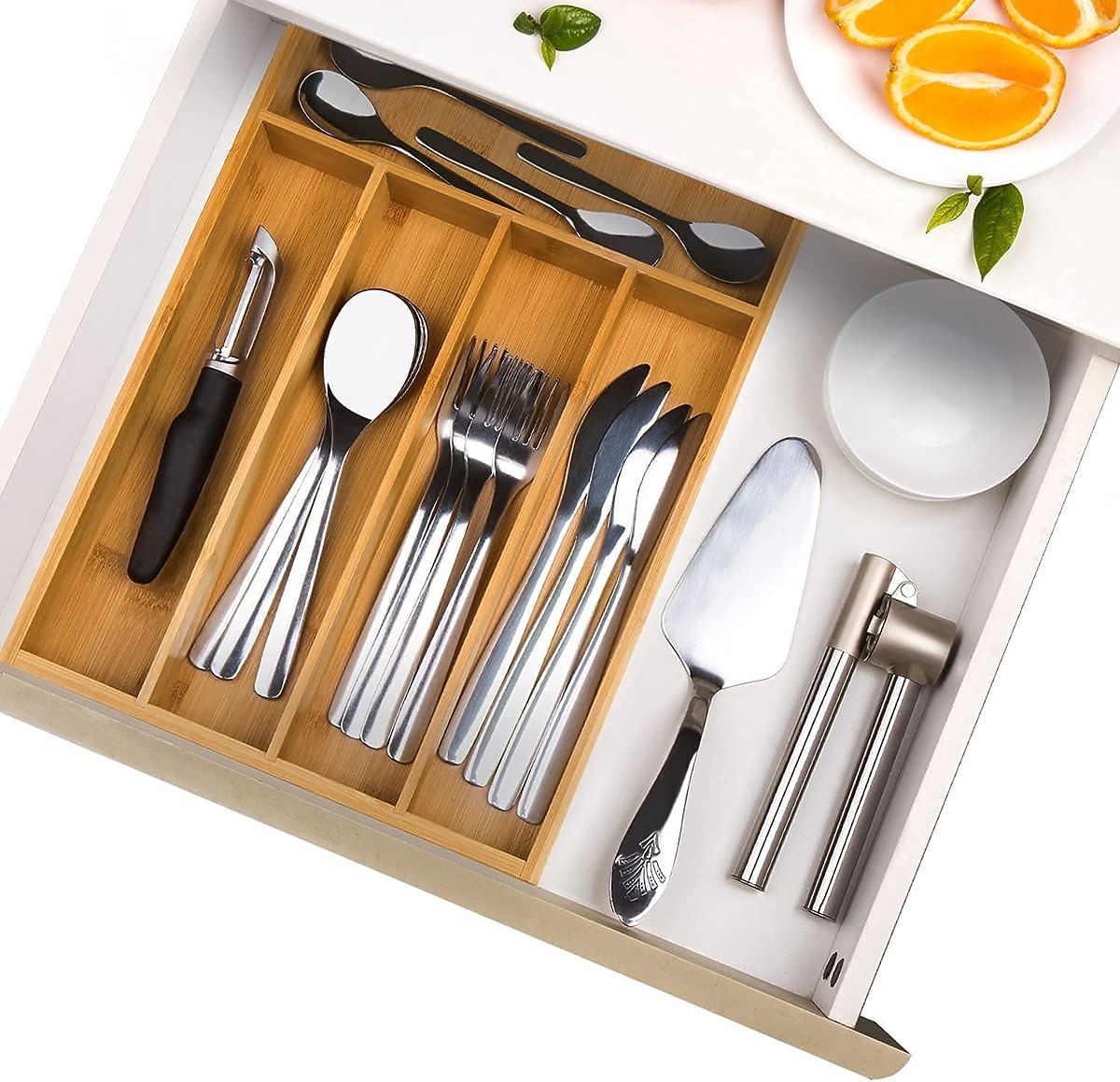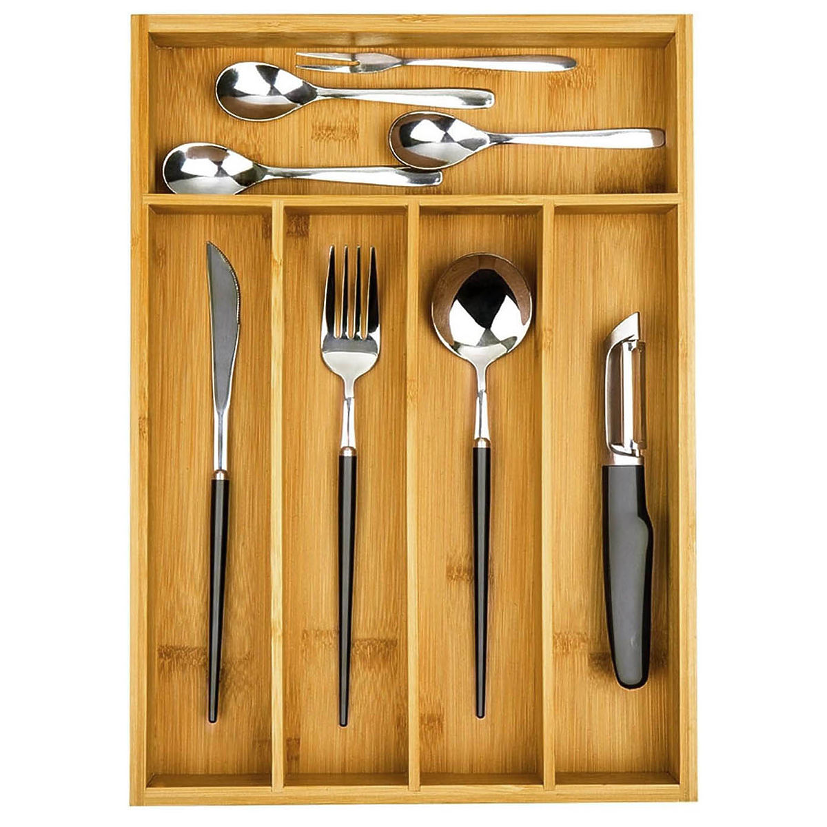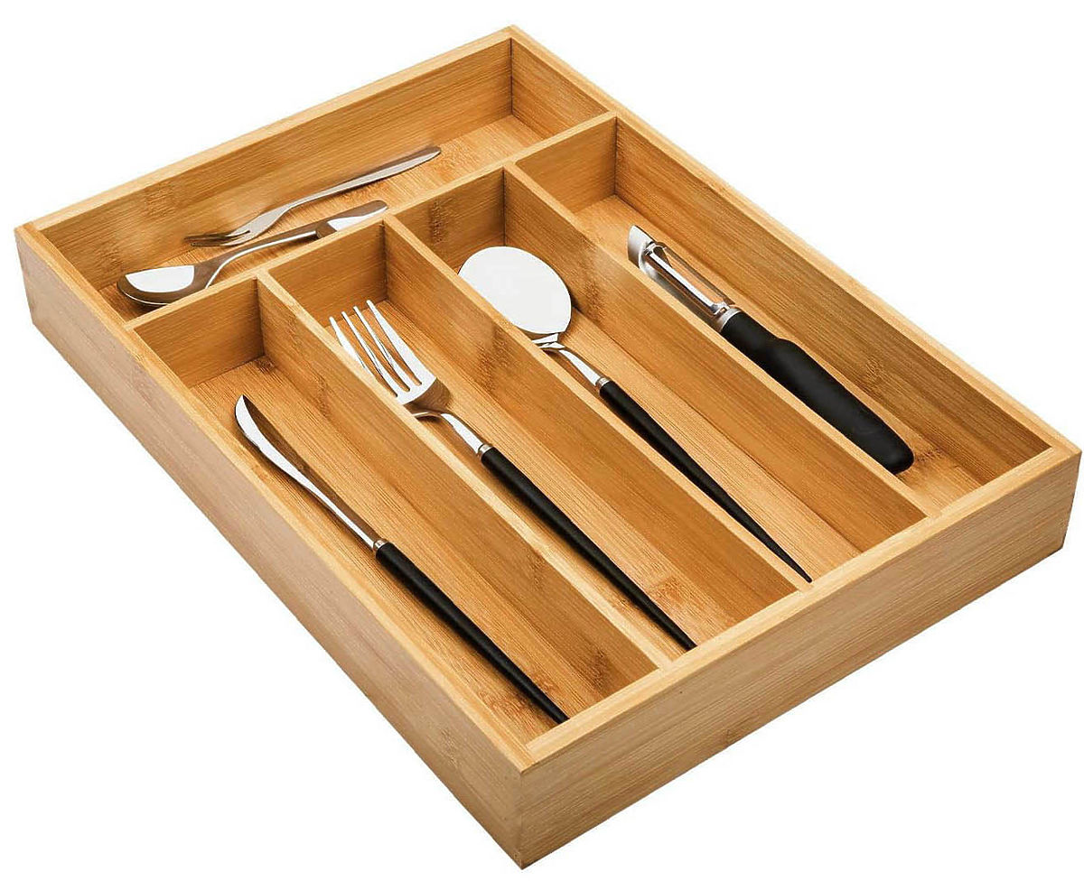 Bamboo organizer with 5 compartments for cutlery and more. .. more