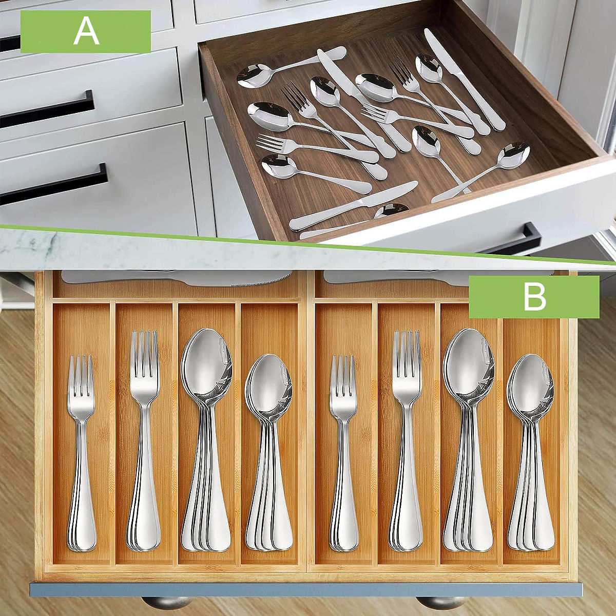Lukahome.eu   »   Kitchen accessories a tools   /   Organizers to kitchen   /   Bamboo Cutlery Organizer GAEL