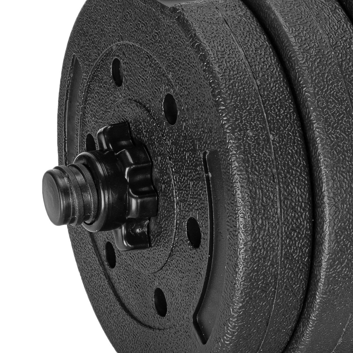 Set contents: 2x grips, 4x clamps, 12x weights (4x 2 kg, 4x 1.5 kg, 4x 1.25 kg)