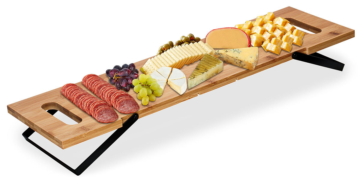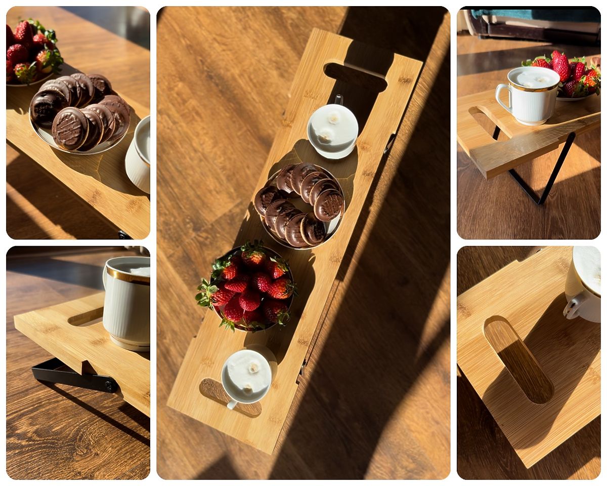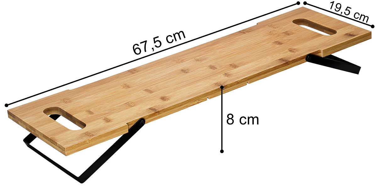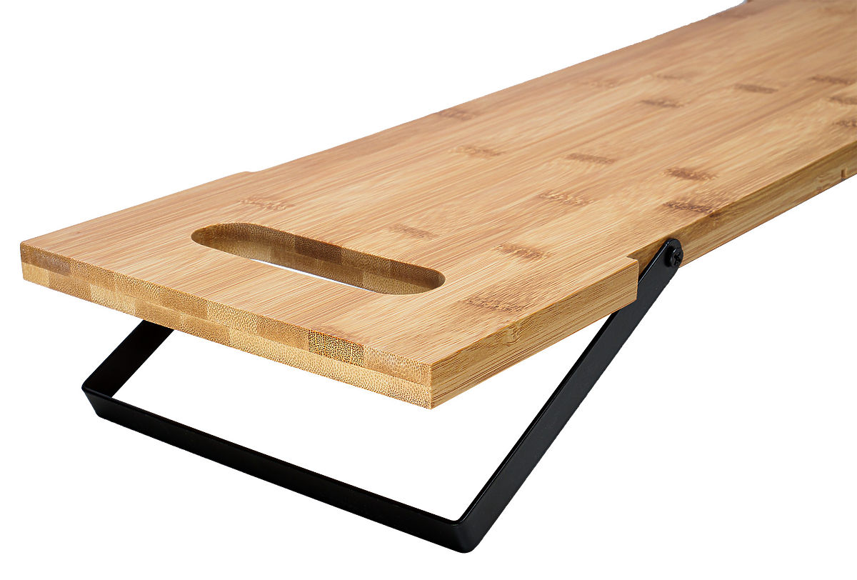 Bamboo Serving Board OFELIA Purpose: for snacks and all types of dishes | Color: bamboo | Foldable ✔️Advantages of the "Ofelia" serving board ✅ Use of bamboo wood: The bamboo wood used is characterized by high durability and resistance to damage, and it is also an eco-friendly solution, making the "Ofelia" board a great choice for eco-conscious individuals. ✅ Metal bases in black shade: The metal stands, painted in an elegant black color, not only enhance the board's appearance, giving it a modern character, but also ensure its stability and safety during use. ✅ Convenient handles: The board is equipped with two practical handles that maximize comfort when carrying, meeting the expectations of users seeking practicality and functionality. ✅ Versatility of use: The "Ofelia" board is great for serving a wide range of snacks, from selected sushi, a variety of cheeses and cold cuts, to various appetizers, making it a versatile tool for any type of entertaining. ✅ Ease of storage: The design with foldable legs means the board does not take up much space, making it ideal for areas with limited storage options. ✅ Dimensions: Length: 67.5 cm, Width: 19.5 cm, Height with legs: 8 cm, Thickness: 1.5 cm, ensuring ample space for arranging diverse dishes while maintaining ease of storage. ✔️ Specifications Material: Bamboo wood Legs: Metal, foldable in black color Handles: Two, for easy carrying Use: Ideal for serving snacks, sushi, cheeses, cold cuts, appetizers Easily storable thanks to foldable legs, takes up little space ✔️ Dimensions Length: 67.5 cm Depth: 19.5 cm Height: 8 cm (with legs) Board thickness: 1.5 cm It's a great gift idea! Additional Information The colors shown are indicative - they may differ from the actual ones due to different monitor settings and photo editing processes. Actual dimensions may vary from those listed above. Error tolerance may be +/- 5%. Brand: Gockowiak EAN code: 5902340330371 Color: natural bamboo Board thickness: 1.5 cm Board length: 67.5 cm Height with legs: 8 cm Foldable: yes
