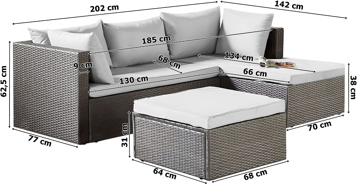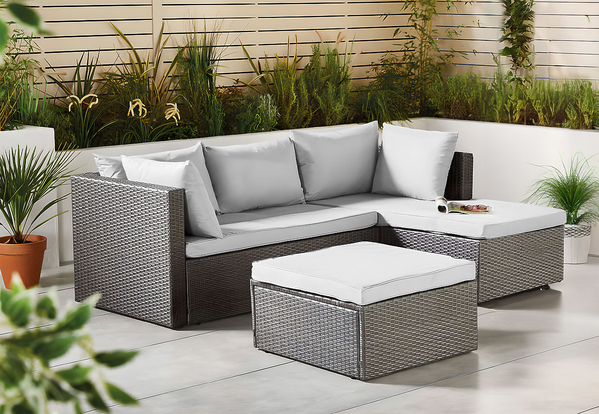 Florencja Garden Furniture Set Gray Sofa Ottoman