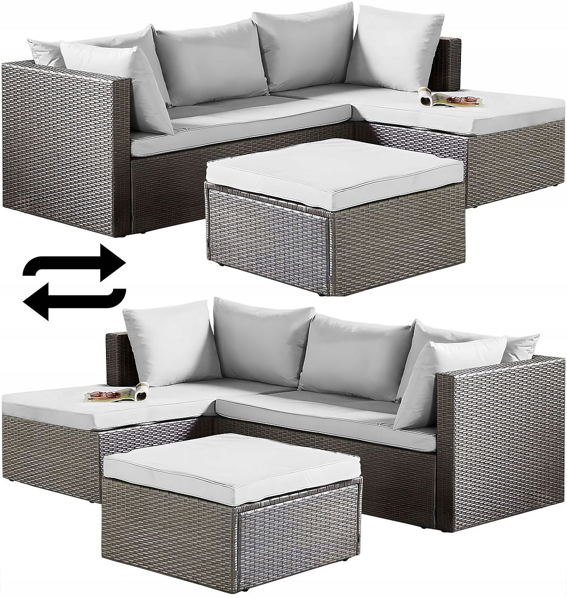 ✅ Material Durability: The set is made from technorattan, which is weather-resistant and easy to maintain. Technorattan perfectly imitates natural rattan while retaining its properties for a long time.