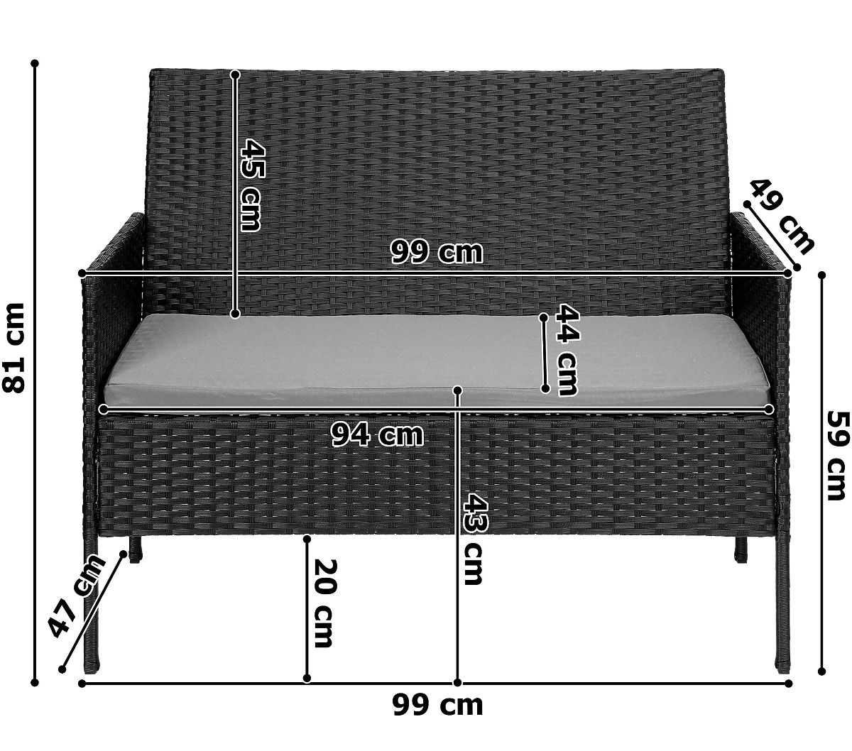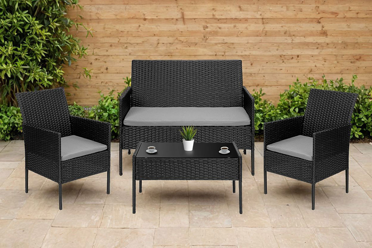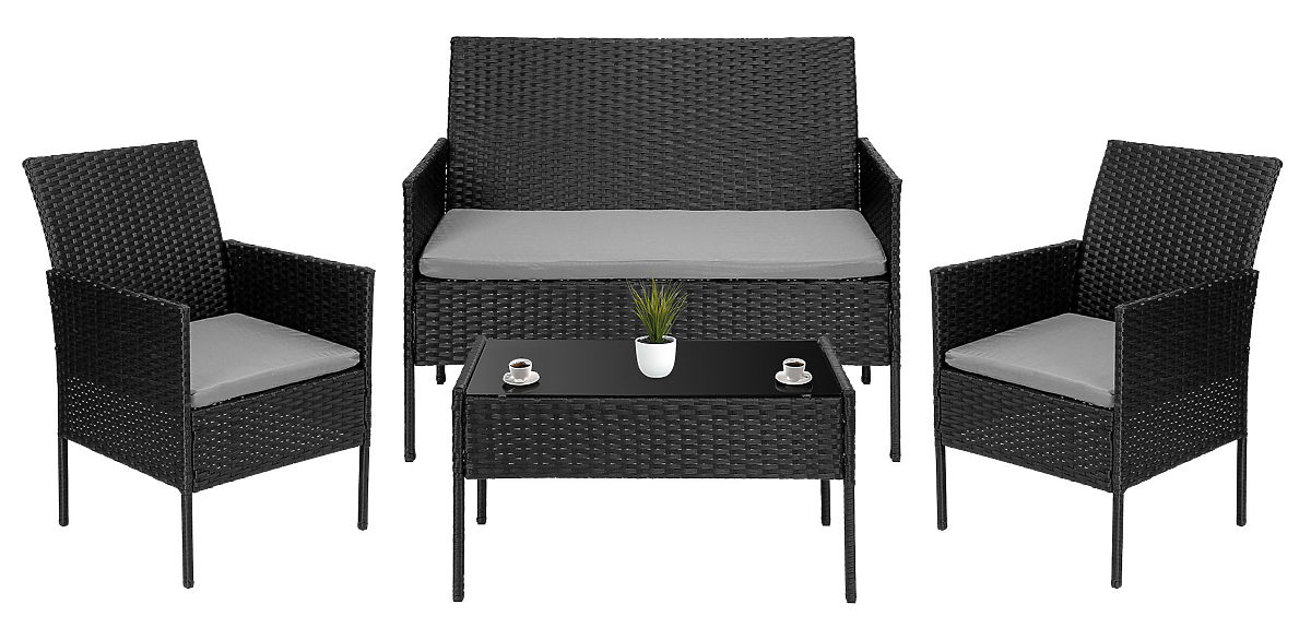 Garden furniture set from technorattan 4-in-1 MAGNOLIA black grey cushions