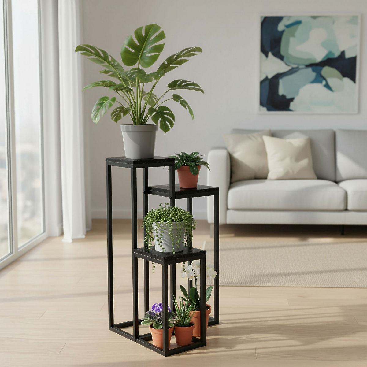 Elegant Munir plant stand with black marble effect and three shelves. .. more