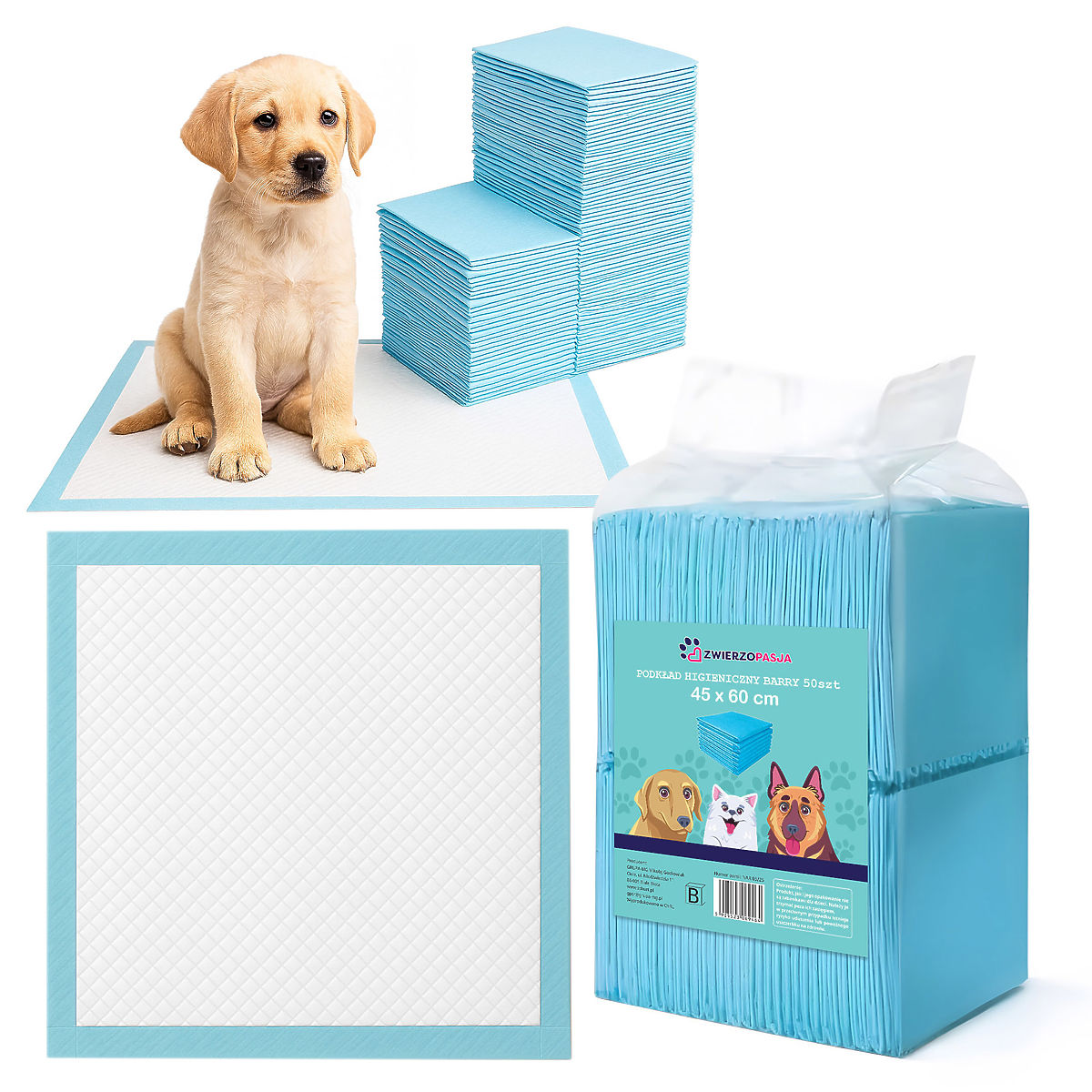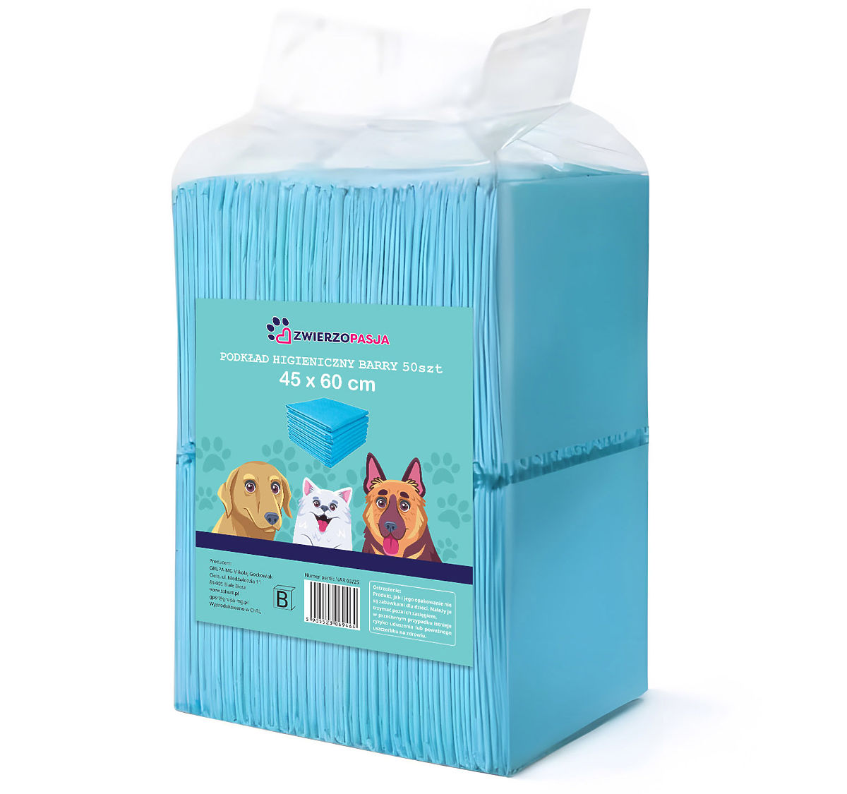 Hygienic Pads BARRY 45x60 50 pcs. Usage: For small animals | Size: 45 x 60 cm Hygienic pads Barry are a practical and reliable support for every dog owner. They make it easier to maintain cleanliness in the home, support hygienic habits in puppies, and effectively protect floors and beds from contamination. Thanks to them, you and your pet can enjoy greater comfort and peace every day.