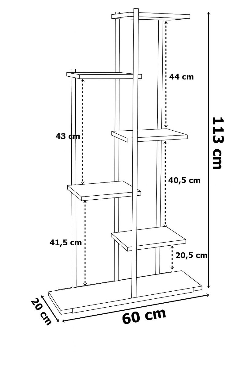 Metal Plant Stand IKER Rustic 6 Levels Model: IKER | Color: Black/Antique Oak | Number of Levels: 6 Are you looking for an elegant way to display your plants, herbs, or decorations? The IKER plant stand combines modern design with a practical approach to space organization. With its stable metal construction and rustic shelves, it fits perfectly into any interior – from a loft to a cozy apartment. You will get a stylish piece of furniture that not only beautifies your space but also allows you to organize your favorite plants in one place without worrying about stability or durability. ⭐️ 6 levels of display ⭐️ Stable construction ⭐️ Rustic style ⭐️ EVA pads protecting the floor ⭐️ Purchase from the manufacturer ☑️ Specifications: Number of shelves: 5 small + 1 large Frame material: powder-coated metal Shelf material: MDF board Maximum load of each shelf: 5 kg Net weight: 4.4 kg Additional elements: black screws, EVA pads protecting the floor ☑️ Dimensions: Height: 113 cm Width: 60 cm Depth: 20 cm Dimensions of small shelves: 25x17 cm Dimensions of large shelf: 60x17 cm Additional Information The displayed colors are indicative - they may differ from the actual ones due to different monitor settings and the photo editing process. Actual dimensions may vary from those listed. Error tolerance may be +/- 5%. Brand: LoftInspired Product Code: 5905523069747 Color: antique oak, black Height: 113 cm Width: 60 cm Depth: 20 cm Self-assembly: yes