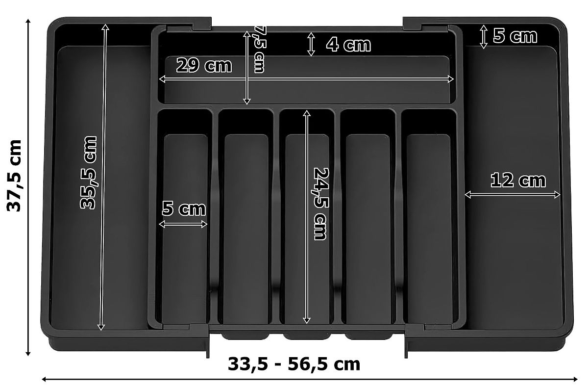 The Garfo organizer by Gockowiak is a functional addition to any kitchen, helping to keep drawers tidy. Thanks to its expandable design, you can perfectly adjust it to the width of your drawer, avoiding empty spaces or overly tight fits. Made from durable PP (polypropylene) material, it withstands everyday use. The organizer offers 6 compartments for basic cutlery (knives, forks, spoons, teaspoons) and, when expanded, 2 additional ones for kitchen accessories. Suitable for any kitchen!