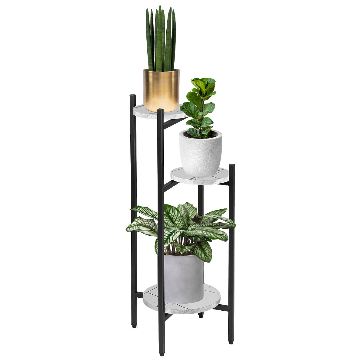 49290-0 Metal Plant Stand TRETORRI White Marble