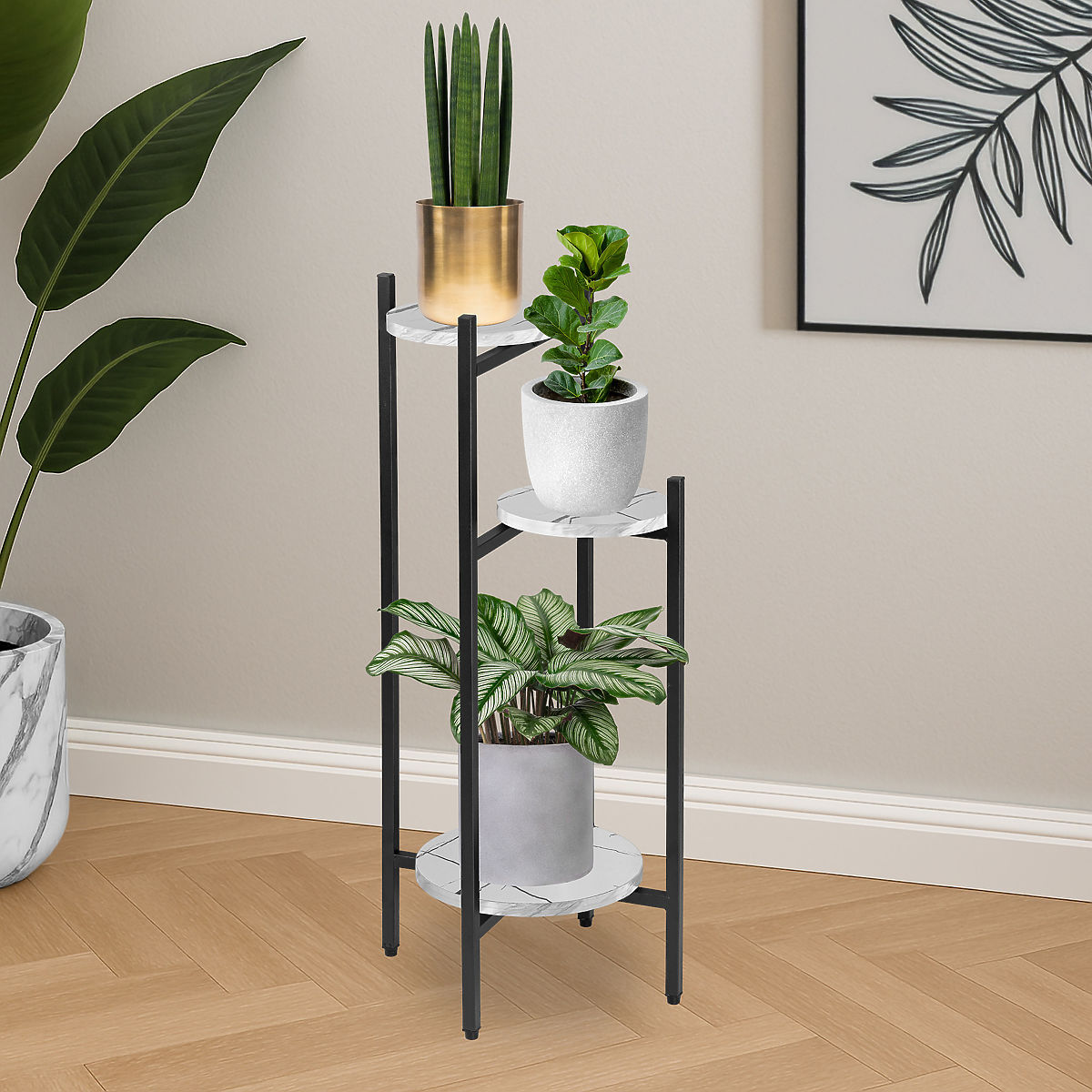 Metal Plant Stand TRETORRI White Marble