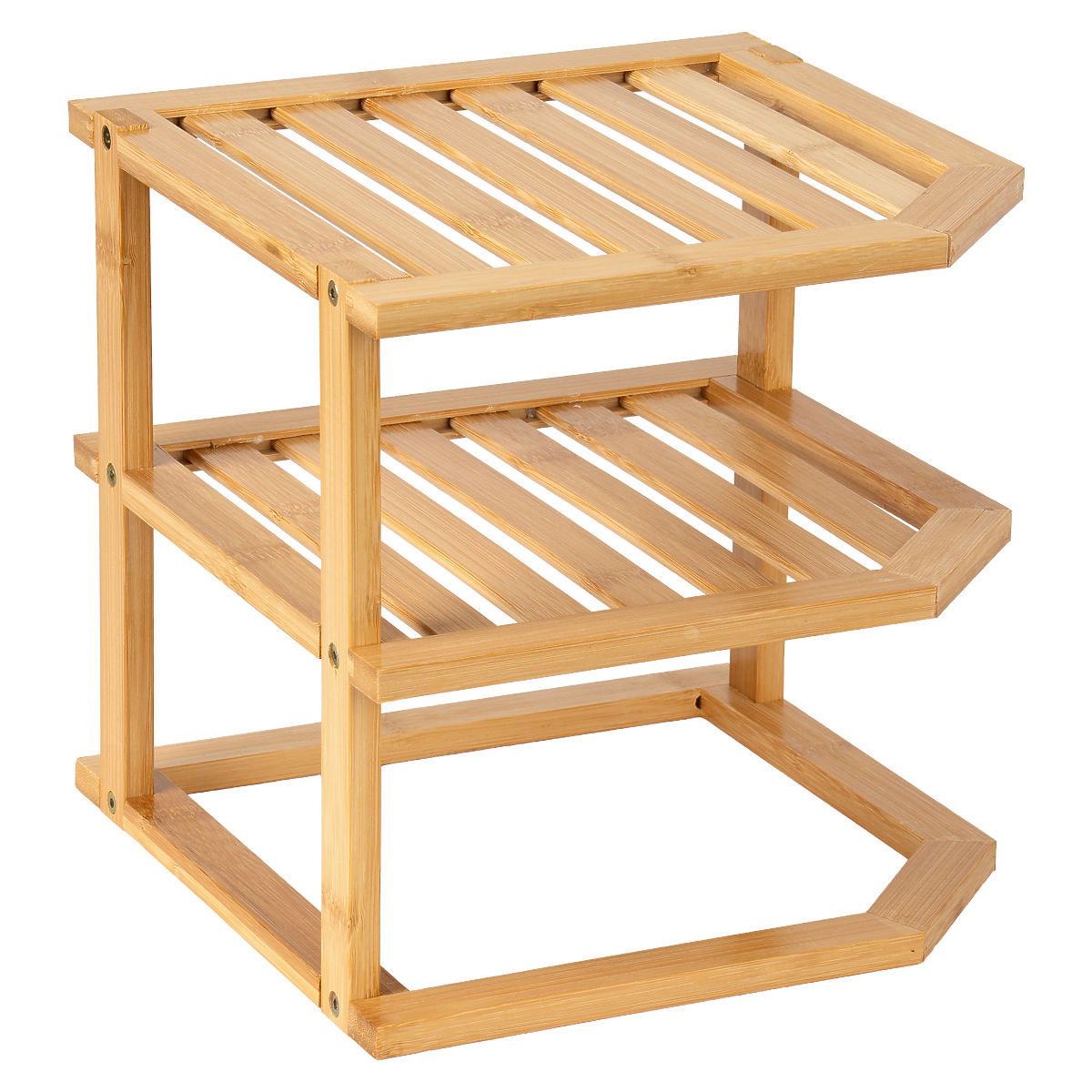 Bamboo corner kitchen shelf with three levels and natural color. .. more