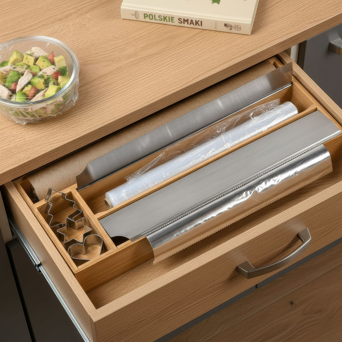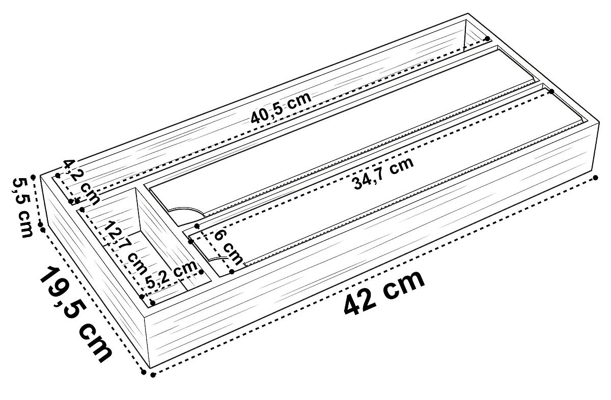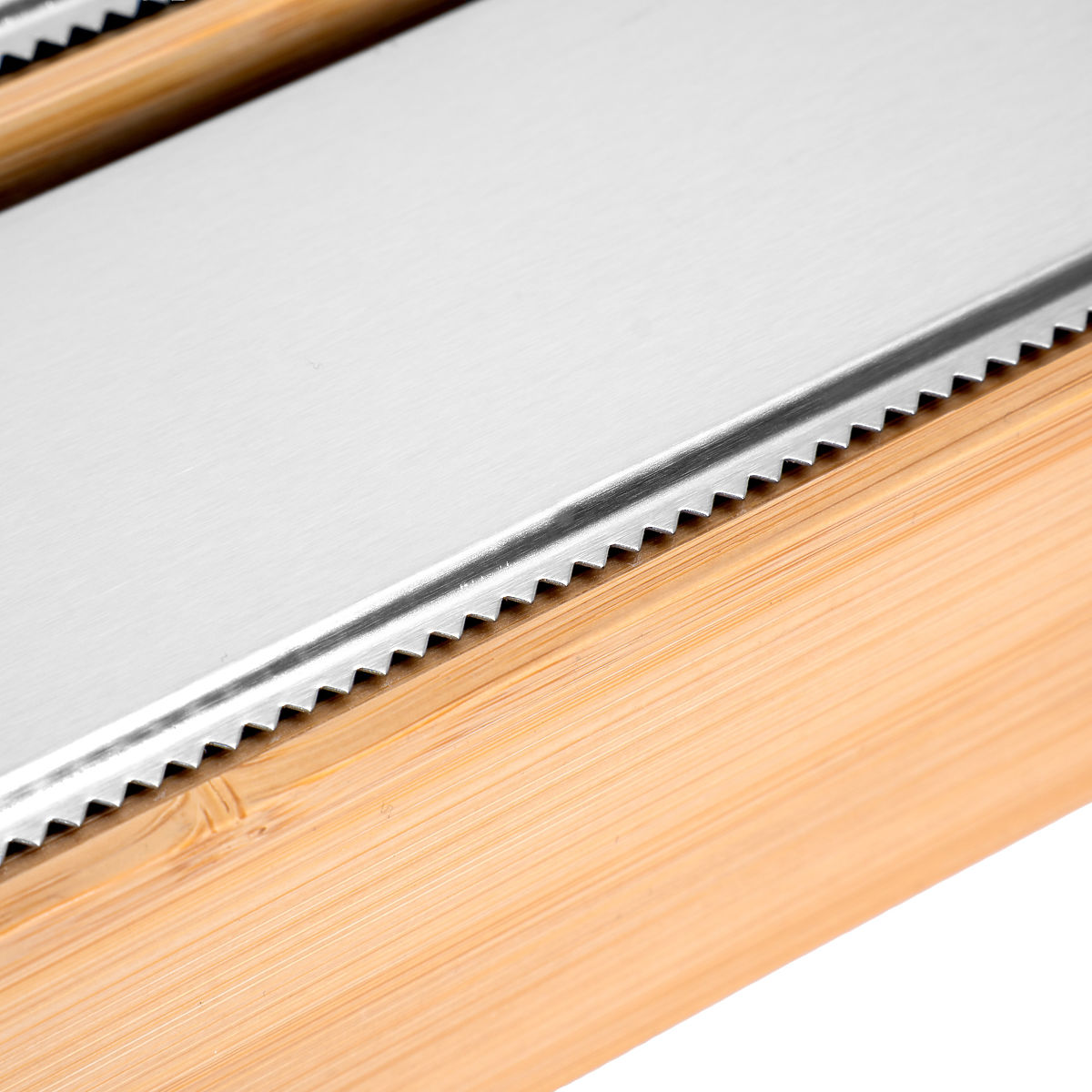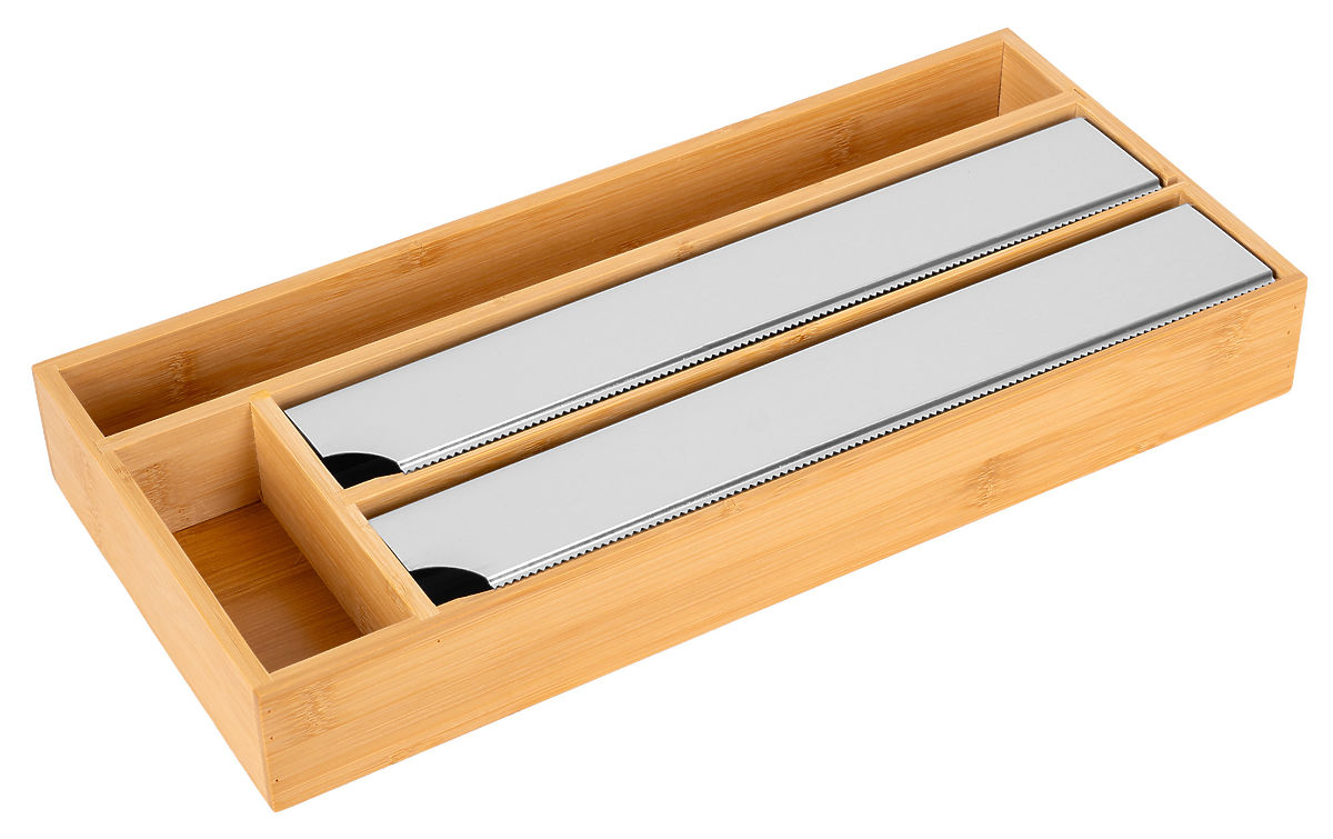 Bamboo Film Dispenser BORDE Model: BORDE | Material: 100% bamboo | Usage: Drawer, kitchen countertop ⭐️ Top quality ⭐️ 100% bamboo wood ⭐️ Precision stainless steel cutters ⭐️ Versatile use ⭐️ 4 practical compartments ⭐️ Purchase from the manufacturer ✍️ Specifications: Material: natural bamboo + stainless steel Color: brown (bamboo) + silver (steel) Style: minimalist, modern Usage: food wrap, aluminum foil, baking paper, bags, kitchen rolls Number of compartments: 4 Brand: Gockowiak Weight: 0.95 kg ✍️ Dimensions: Height: 5.5 cm Width: 42 cm Depth: 19.5 cm Additional information Displayed colors are indicative - they may differ from actual ones due to different monitor settings and photo editing processes. Actual dimensions may differ from those stated. Error tolerance can be +/- 5%. Brand: Gockowiak EAN product code: 5902340332436 Color: natural Height: 5.5 cm Width: 42 cm Depth: 19.5 cm