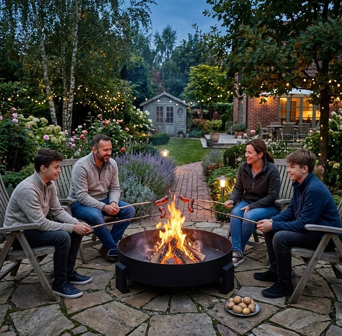 The garden fire pit is an ideal way to create a unique atmosphere in the garden, on the terrace, or in the backyard. It allows you to enjoy a real campfire in the open air, providing pleasant warmth and ambient lighting during evening gatherings. It is perfect for family and friends gatherings, roasting treats over the fire, or relaxing after a long day. The open fire creates a unique atmosphere that encourages conversation and relaxation. The fire pit can also serve as a decorative element in the garden, enhancing the character of the space and adding coziness.