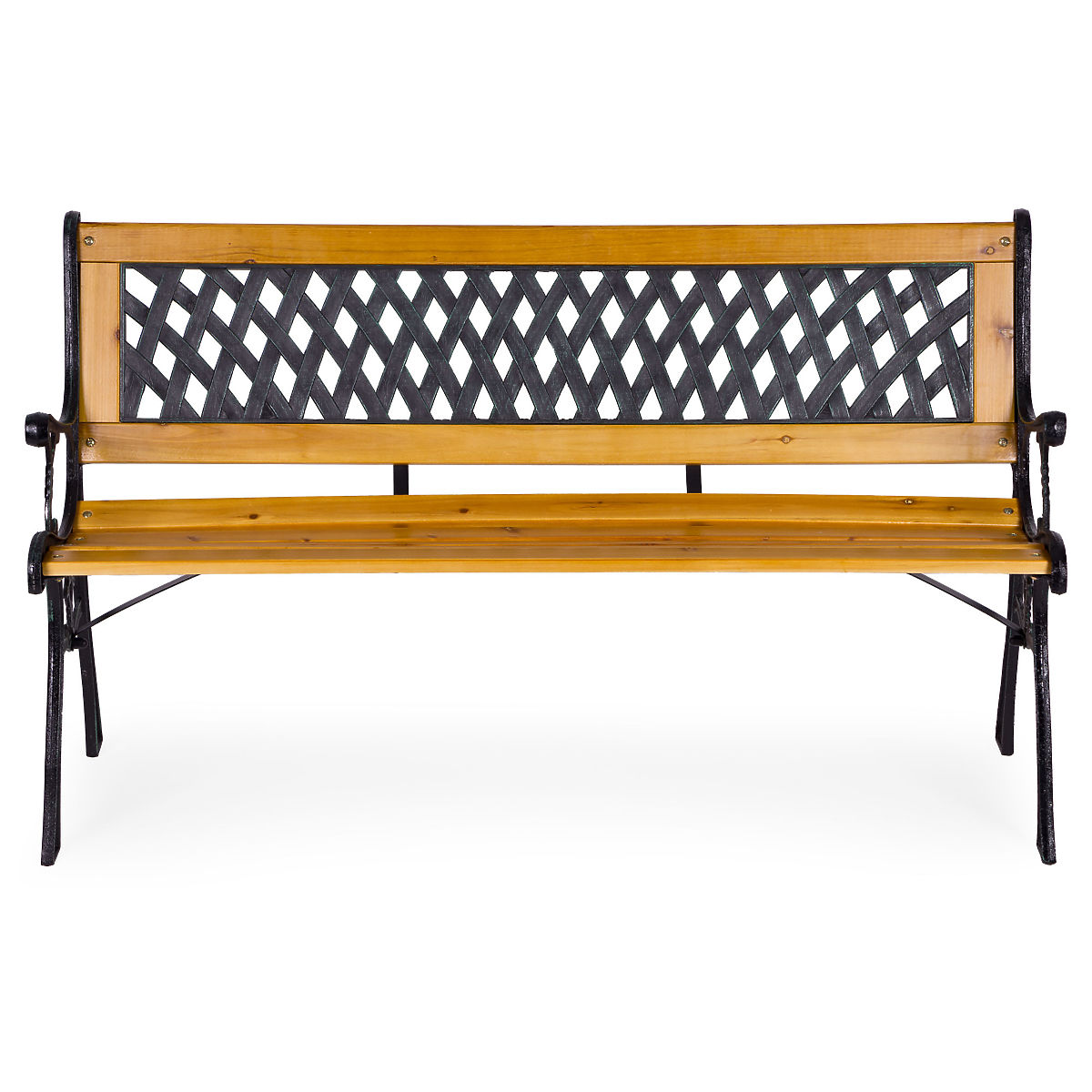 Lukahome.eu » Garden furniture / Garden bench / Wooden Garden Bench 126x51 cm with Lattice Backrest and Cast Iron Legs Park MultiGarden