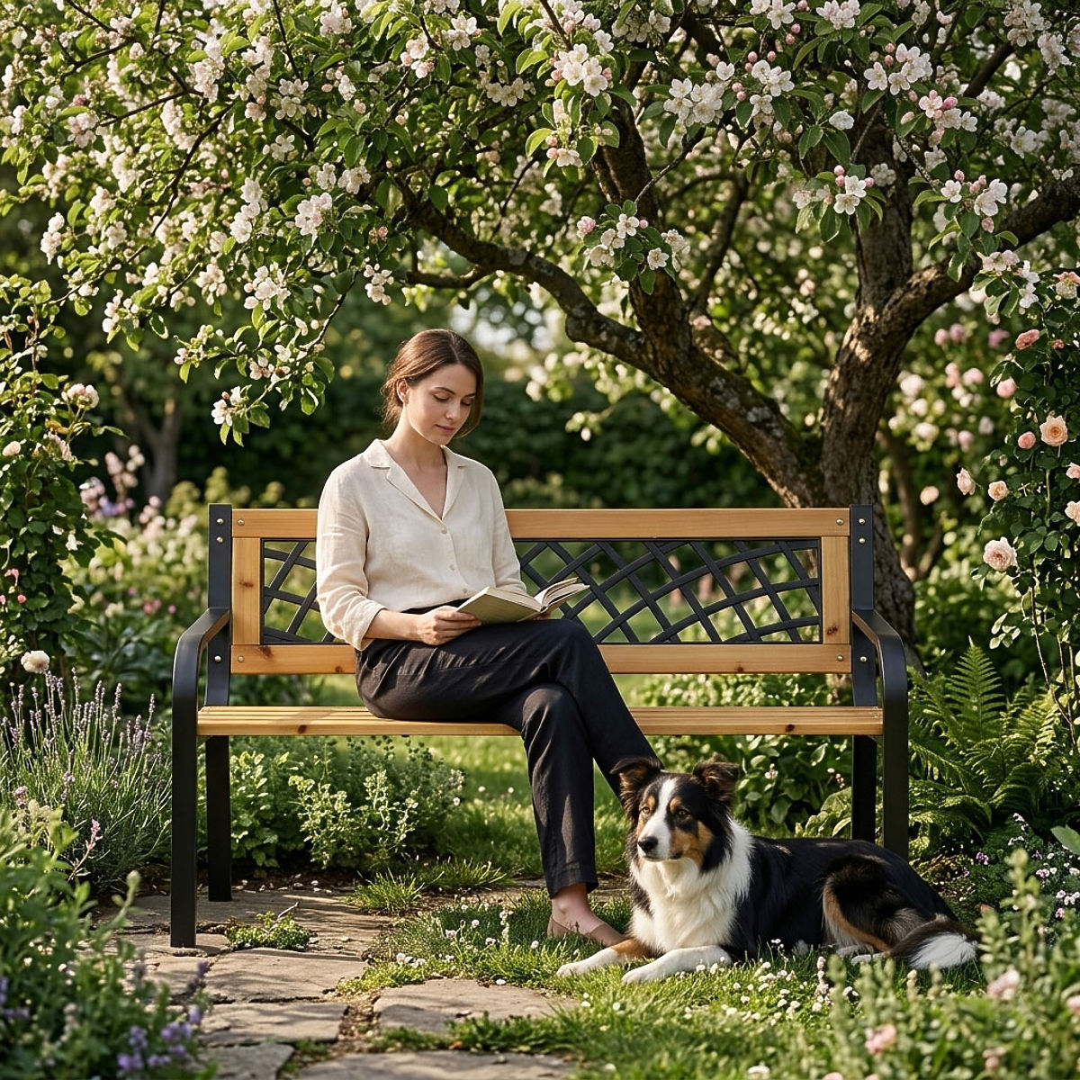 DURABLE BENCH CONSTRUCTIONThe classic form of the bench ensures that it easily fits into various arrangements – from traditional gardens to modern terraces and balconies. The delicate lattice pattern adds lightness while maintaining a timeless character. Thanks to its universal appearance, it forms a cohesive addition to the space, regardless of the surrounding style.