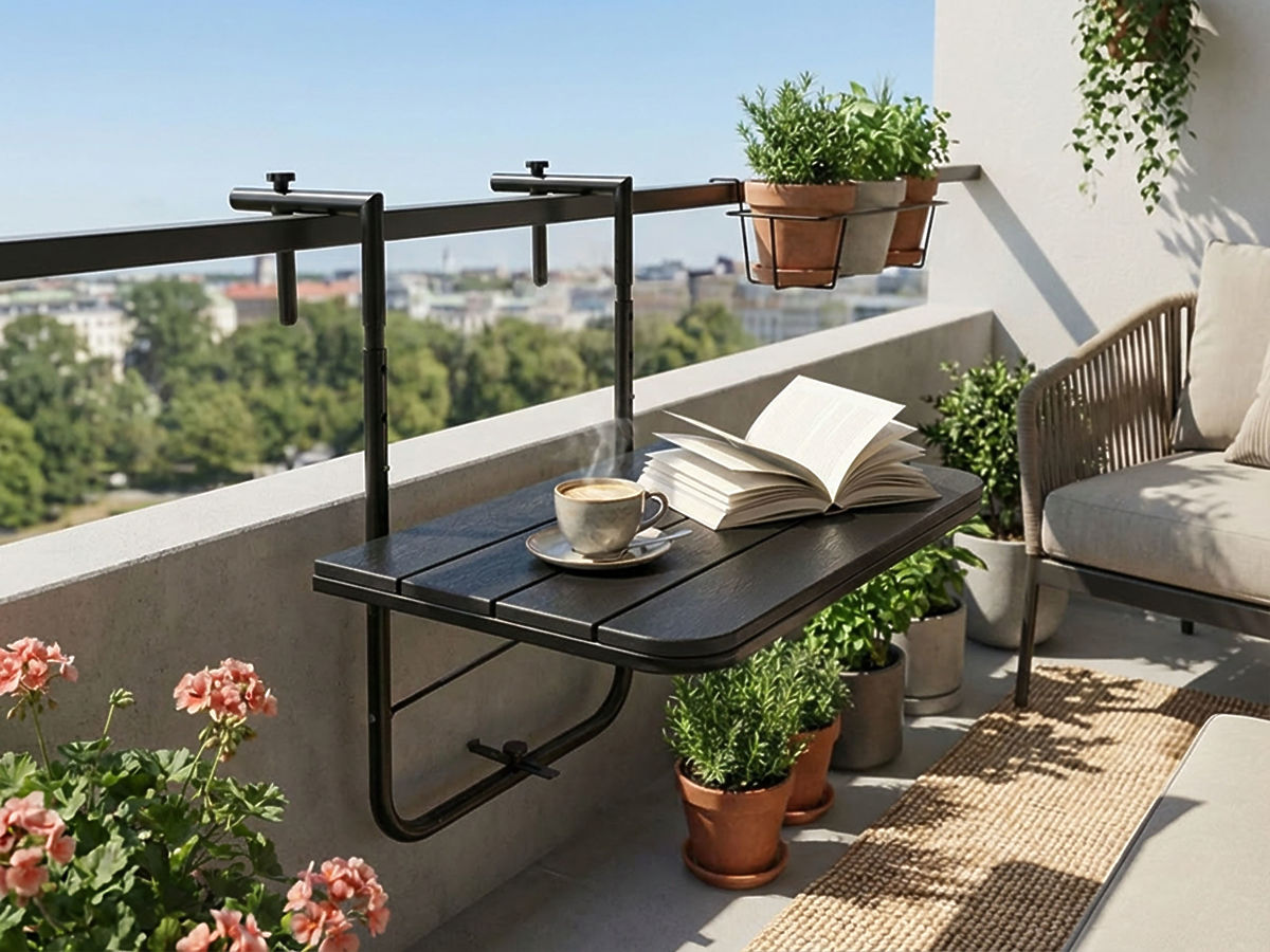 ☀️ Balcony Table Aretto Black – Functional table for coffee and relaxation ☀️