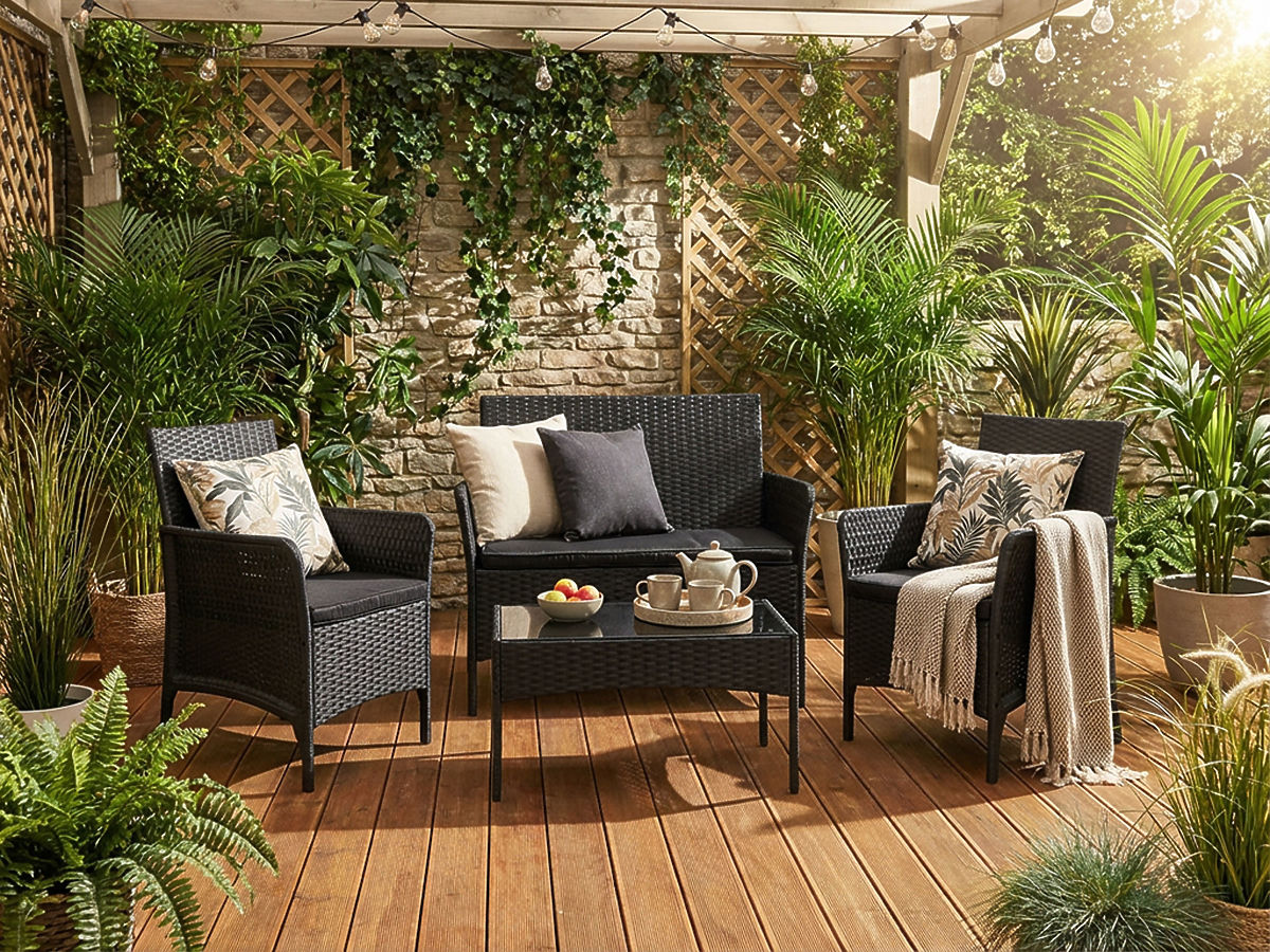49347-0 CAMELIA Black Garden Furniture Set with Black Cushions