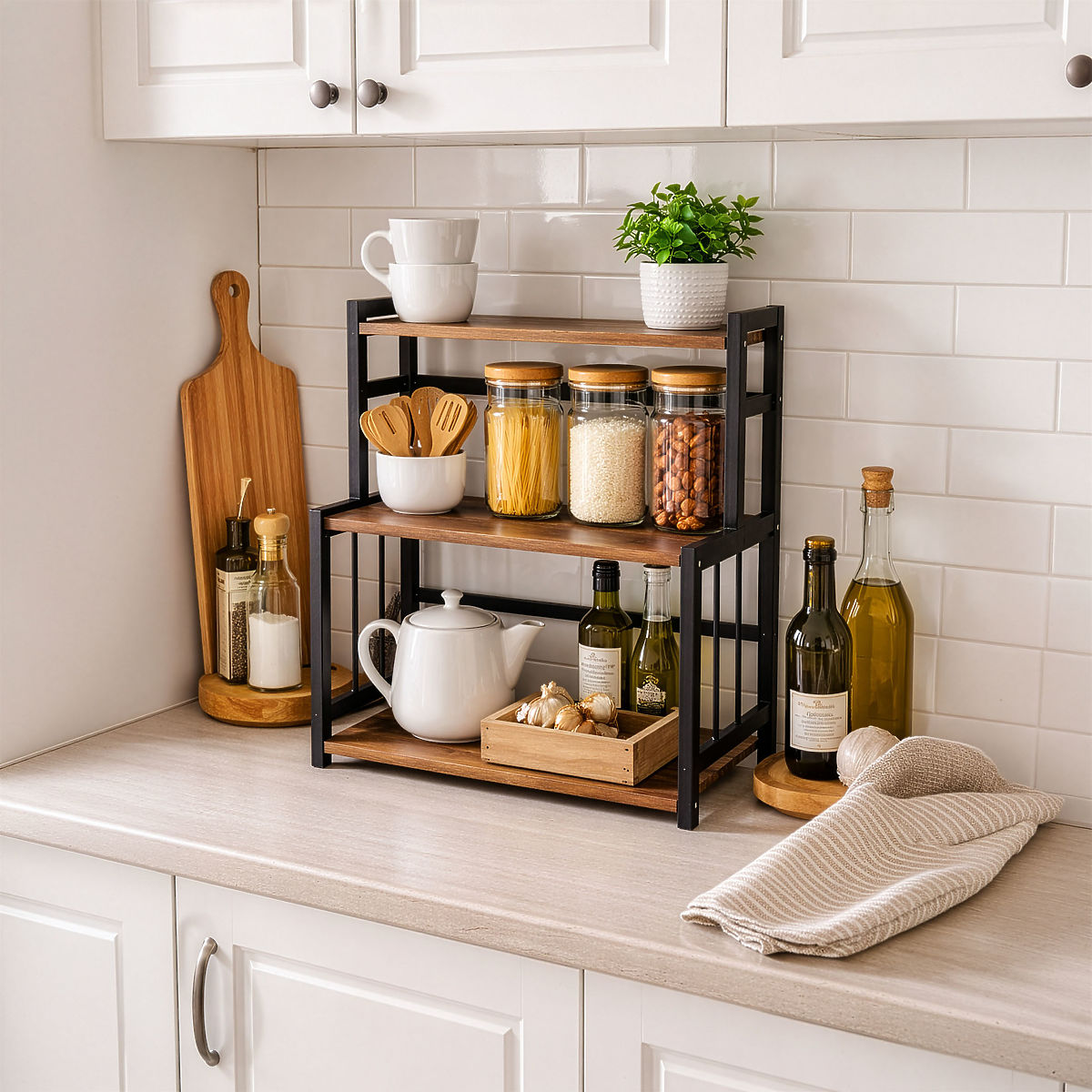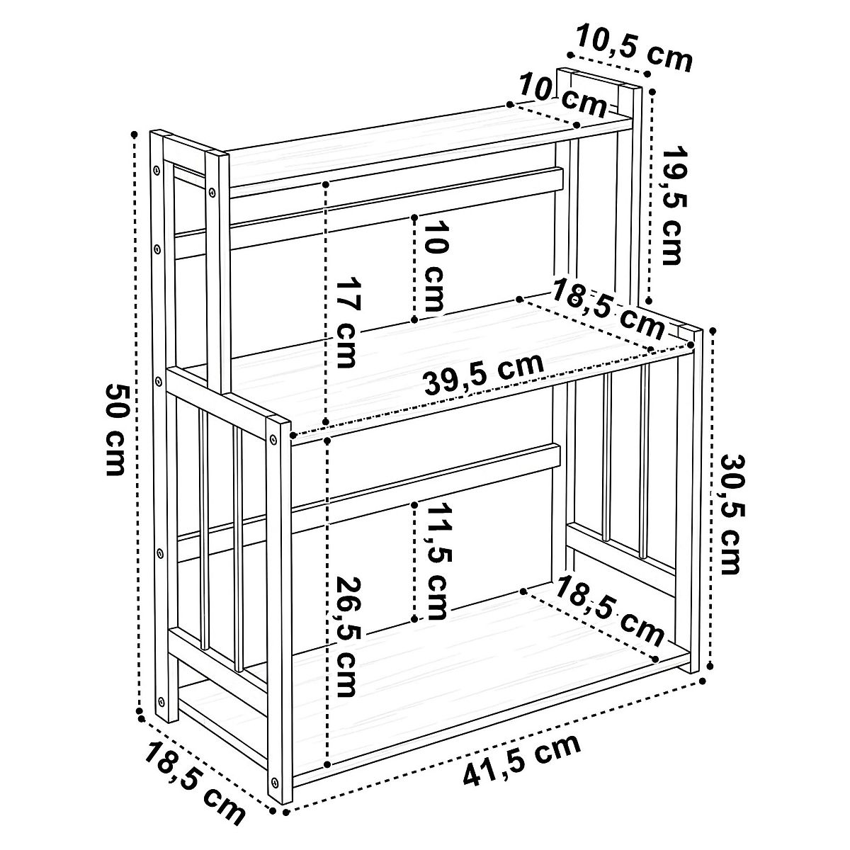 Kitchen Spice Rack CEZAR Wood Brown Model: Cezar | Pattern: Wood Brown | Suitable for: Kitchen, office ⭐️Perfect for spices ⭐️Three spacious shelves ⭐️Modern loft design ⭐️Purchase directly from the manufacturer ⚙️ Technical specifications: Material: bamboo wood, laminated boards Pattern: Wood brown Number of shelves: 3 Assembly: self-assembly Maximum load for large shelf: 4 kg Maximum load for small shelf: 2 kg Maximum total load: 10 kg ☑️ Dimensions: Shelf height: 50 cm Shelf width: 41.5 cm Shelf depth: 18.5 cm Width of shelves: 39.5 cm Height from middle to top shelf: 17 cm Depth of top shelf: 10 cm Additional information The colors shown are indicative and may differ from actual colors due to different monitor settings and photo editing processes. Actual dimensions may vary from those listed above. Error tolerance may be +/- 5%. Brand: Gockowiak Product code: 333426MG EAN code: 5902340333426 Pattern: wood brown Height: 50 cm Width: 41.5 cm Construction material: bamboo wood, laminated boards Style: Loft, industrial, vintage