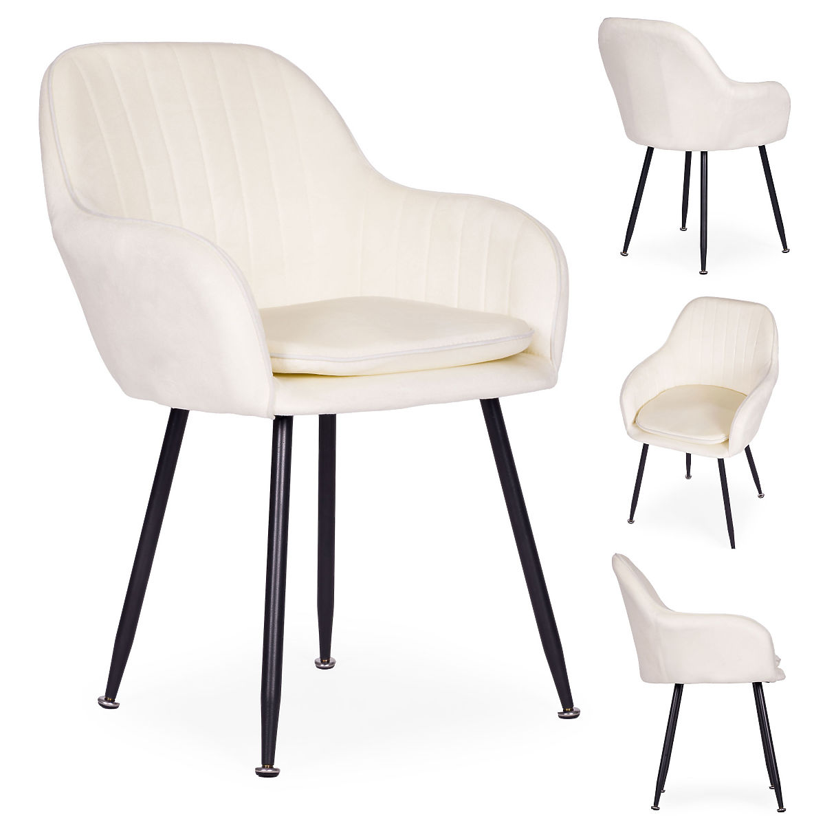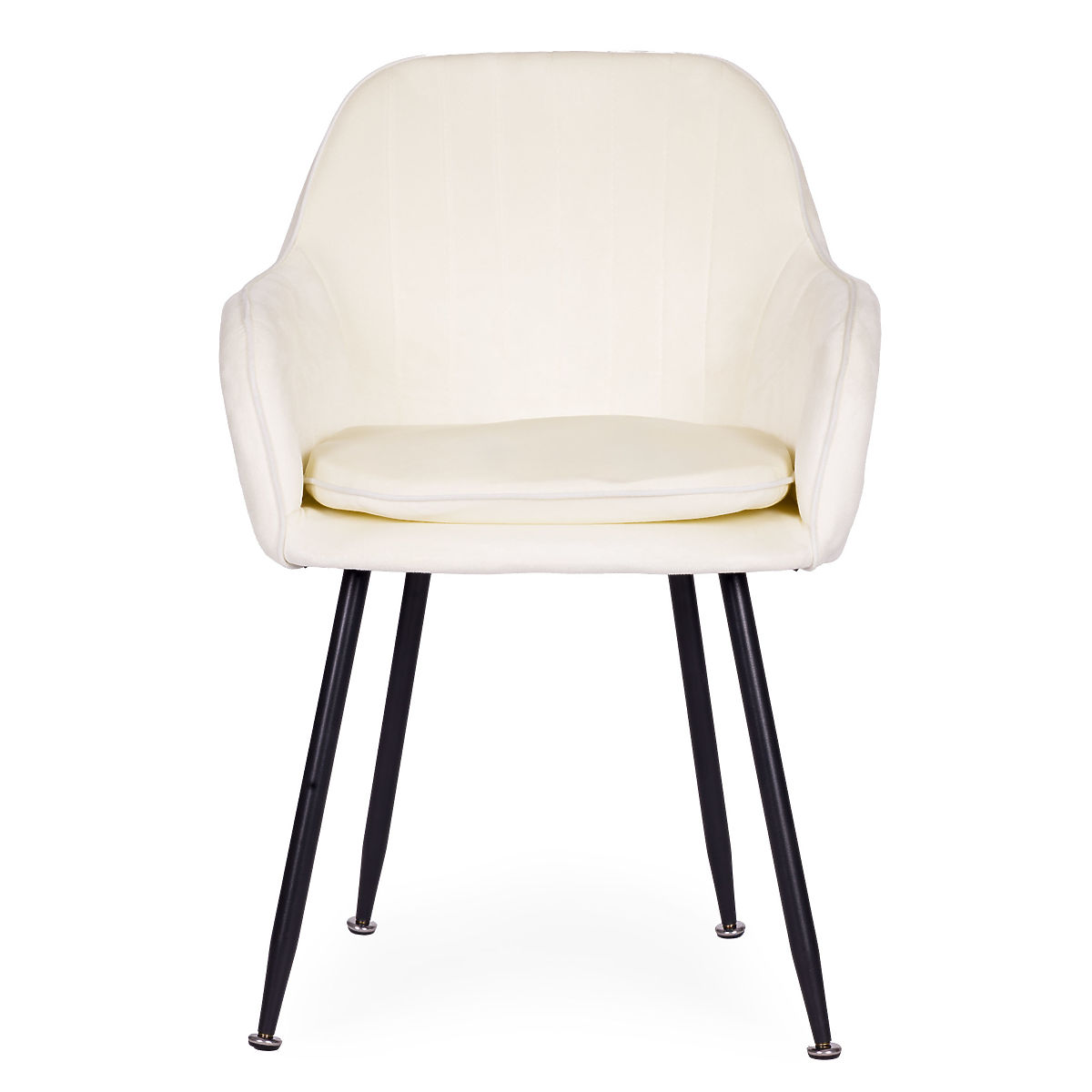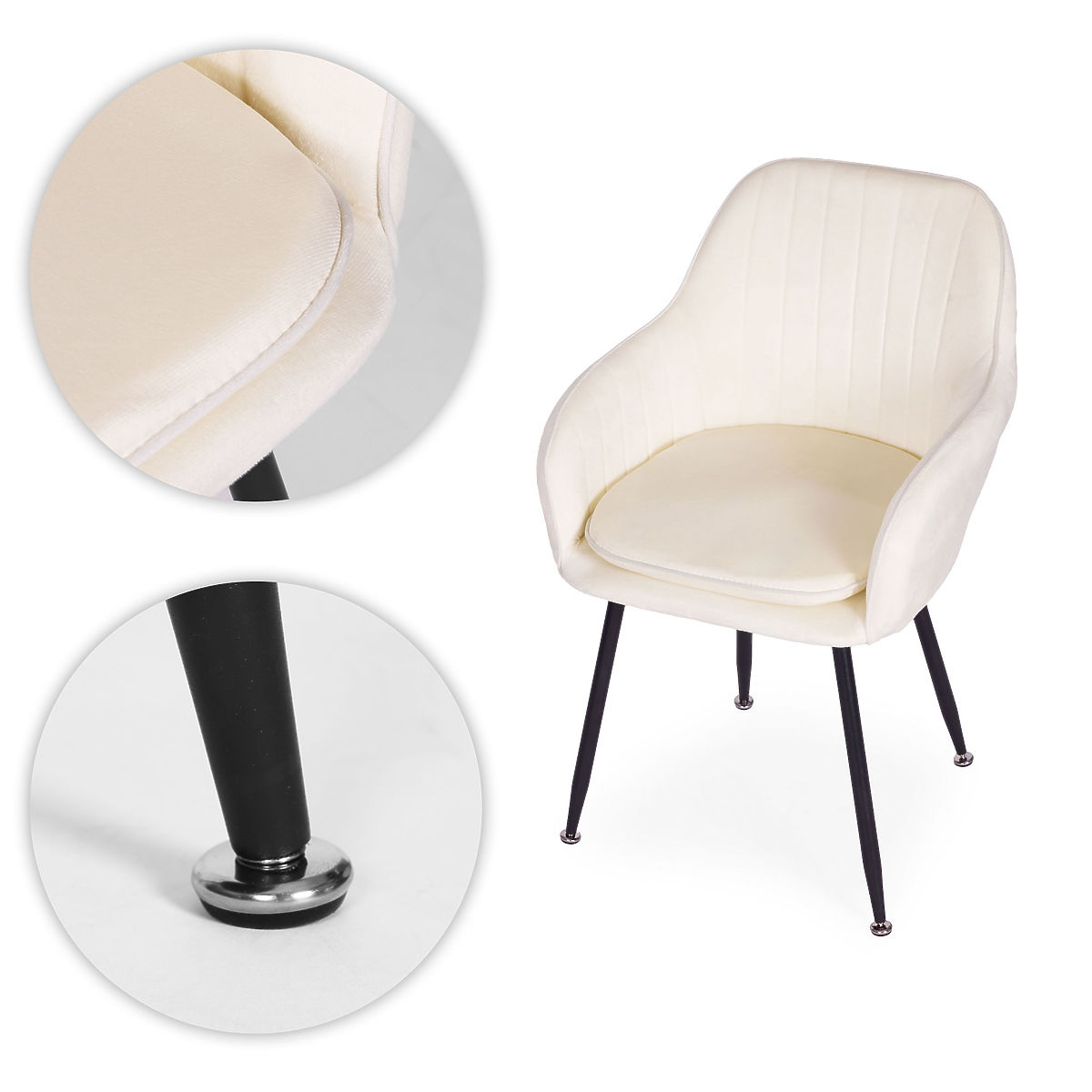Cream velvet chair with steel legs for dining and living room by ModernHome. .. more