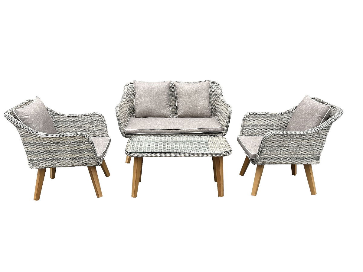Elegant Garden Set from Technorattan (2 x Comfortable Armchair, Sofa + Table) LARGO Grey Variegated