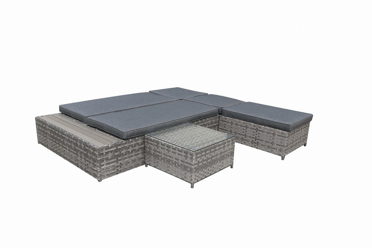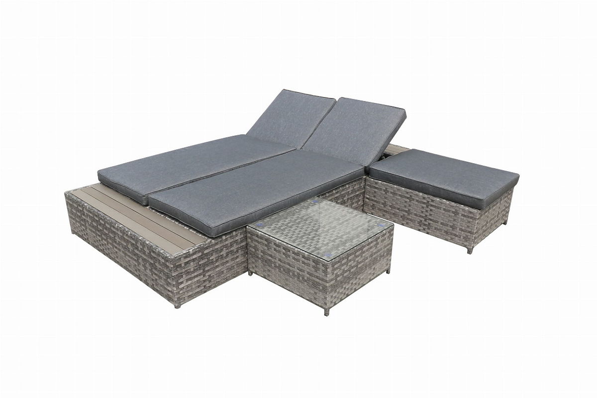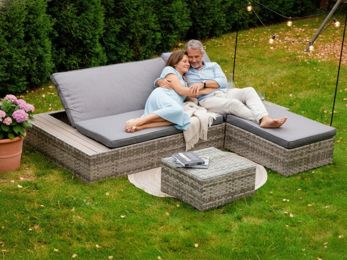 The DIABOLICO garden furniture set embodies modernity and functionality, offering a perfect combination of high-quality aluminum and technorattan. This unique material blend not only ensures the furniture's exceptional resistance to rain, frost, and extreme temperatures but also adds an extraordinary style. The garden furniture, consisting of a pouf, table, and bed that can also serve as a sofa, is an ideal solution for anyone who values both aesthetics and practicality. Adjustable backrests allow for a quick and easy transformation from sofa to bed, enhancing the set's versatility. The DIABOLICO relaxation furniture set, with its wide weaving in shades of gray and elegantly finished cushions, is not just furniture but a piece of art that adds class and unique character to any outdoor space. DIABOLICO set color: gray mélange, uneven Weaving: technorattan 15mm x 1.2mm, smooth structure Furniture construction: aluminum Set composed of 3 elements: 1 x bed/sofa: length: 227 cm width: 114 cm height: 30 cm bed for 2 people: 3-level backrest adjustment sofa for 3 people: 4-level backrest adjustment Maximum height with 3 raised sofa backrests (from the seat): 42 cm 1 x pouf: length: 78 cm width: 58 cm height: 30 cm 1 x table (with a glass, transparent top made of 5mm safety glass): length: 54 cm width: 54 cm height: 30 cm Seat height of the sofa/bed and pouf: 30 cm + 8 cm cushion The bed is shipped in 1 carton with dimensions 230x32x117 cm, weight 35 kg Cushions in gray color included in the set. All have removable covers with zippers, made from outdoor material (100% polyester), washable at low temperatures. The cushion covers are sewn from high-quality fabric coated with Teflon, protecting them from moisture. Cushion filling is made from high-quality upholstery foam (medium-hard - T25), preventing deformation. Cushion thickness: 8 cm Technorattan is resistant to harmful weather conditions, but to enjoy the unchanged appearance of the furniture for even longer, we recommend purchasing a protective cover. The dark gray cover is one-piece and has a drawstring at the bottom, threaded through metal eyelets. All covers are custom-made, with a lead time of approximately 21 working days. Imagine garden furniture that exceeds your expectations in every way – from durability to design. This is BELLO GIARDINO, where every detail matters and luxury meets functionality: Indestructible quality: Our synthetic rattan guarantees that the furniture will last for years without losing its beauty or durability. Weather resistance: Our furniture withstands the toughest weather conditions, from scorching sun to freezing winters, remaining beautiful. Luxurious comfort: Thick, soft cushions invite relaxation, offering comfort hard to find elsewhere. Lightness and strength: The aluminum construction combines the best of both worlds – it is lightweight yet exceptionally stable. Design that enchants: Every element of our furniture is designed with aesthetics and functionality in mind, fitting into any environment. Whether you are a minimalist lover or appreciate rich, elegant arrangements, our furniture meets your expectations, surpassing the boundaries of ordinary functionality and aesthetics. We ensure that even the most demanding customers cannot resist the comfort and style offered by BELLO GIARDINO. Turn your garden, terrace, or balcony into an oasis of relaxation and elegance you've always wanted. Don't wait, discover BELLO GIARDINO today and transform your outdoor spaces into places you've always dreamed of. Customer photos