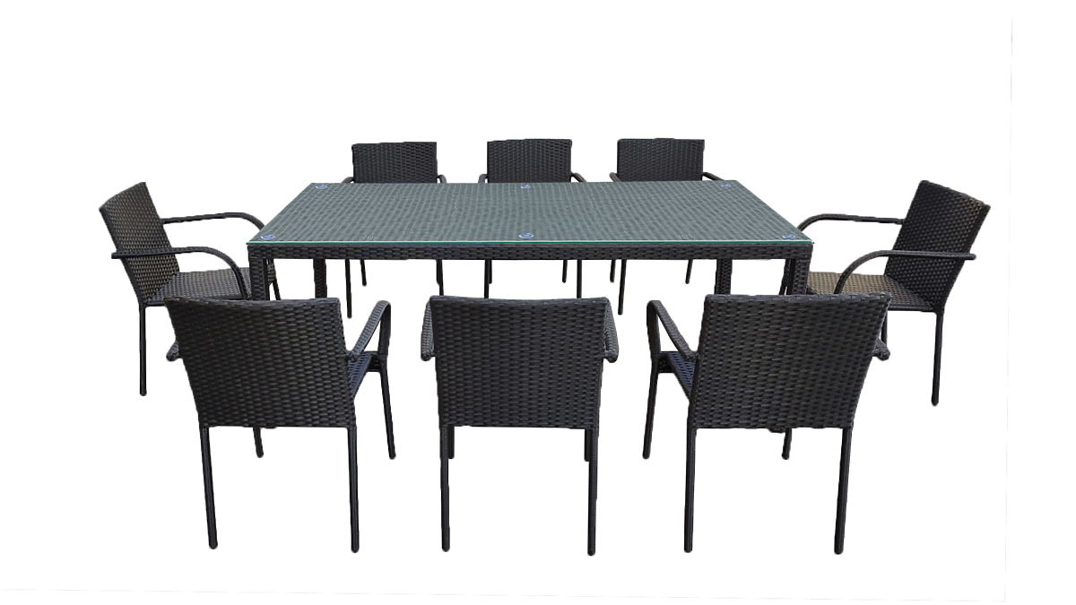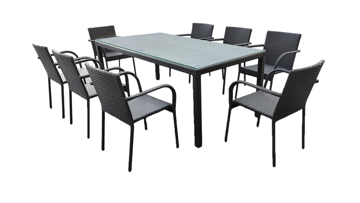 Large Dining Set from Technorattan (Table 200x100cm + 8 Chairs) SOTTILE Black