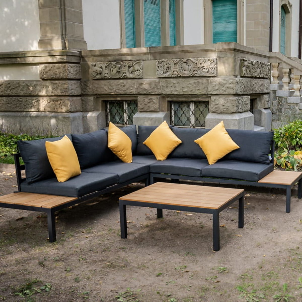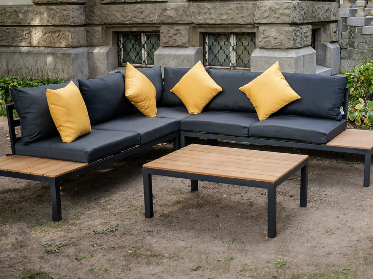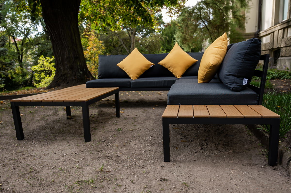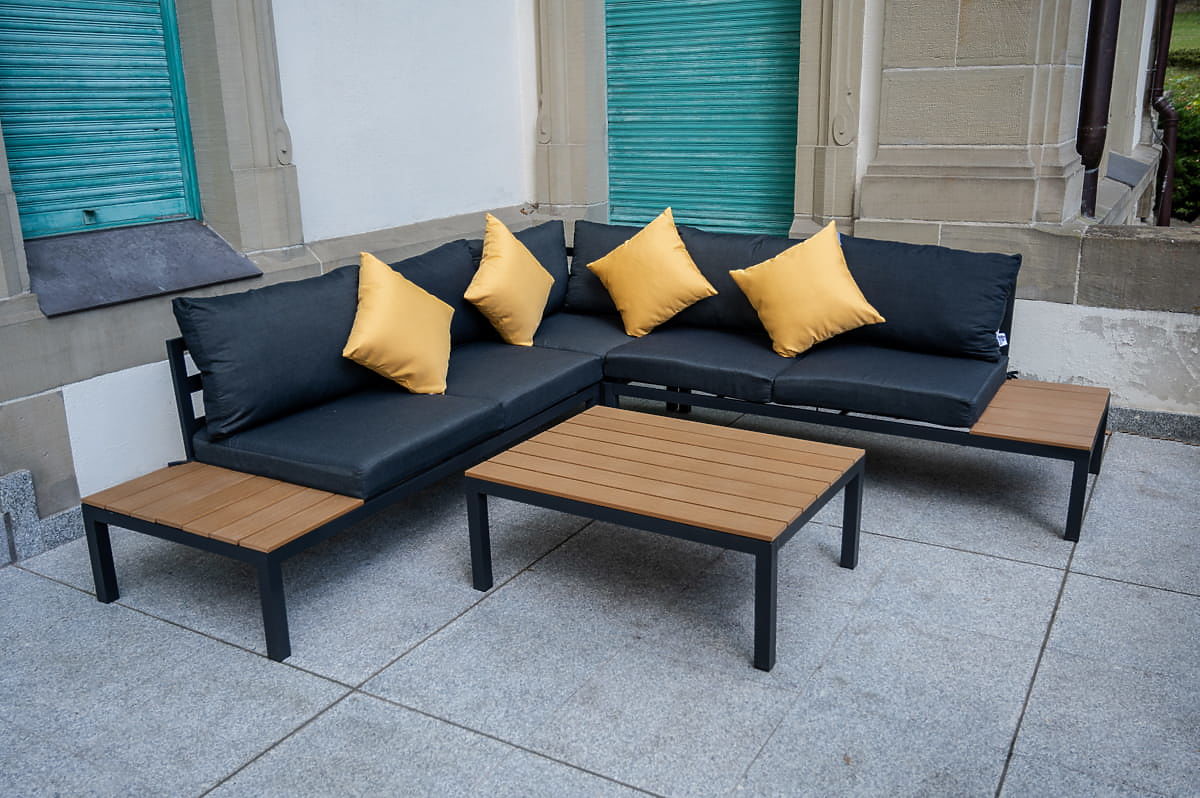 Large Aluminum Corner Set with Table MASSIMO Black