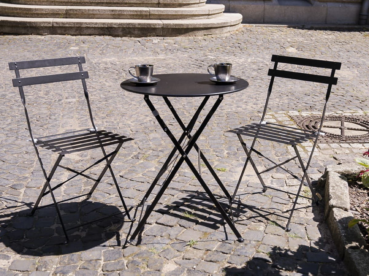 Balcony Furniture Set (2 x Folding Chairs + Table) SEMPLICI Steel Black