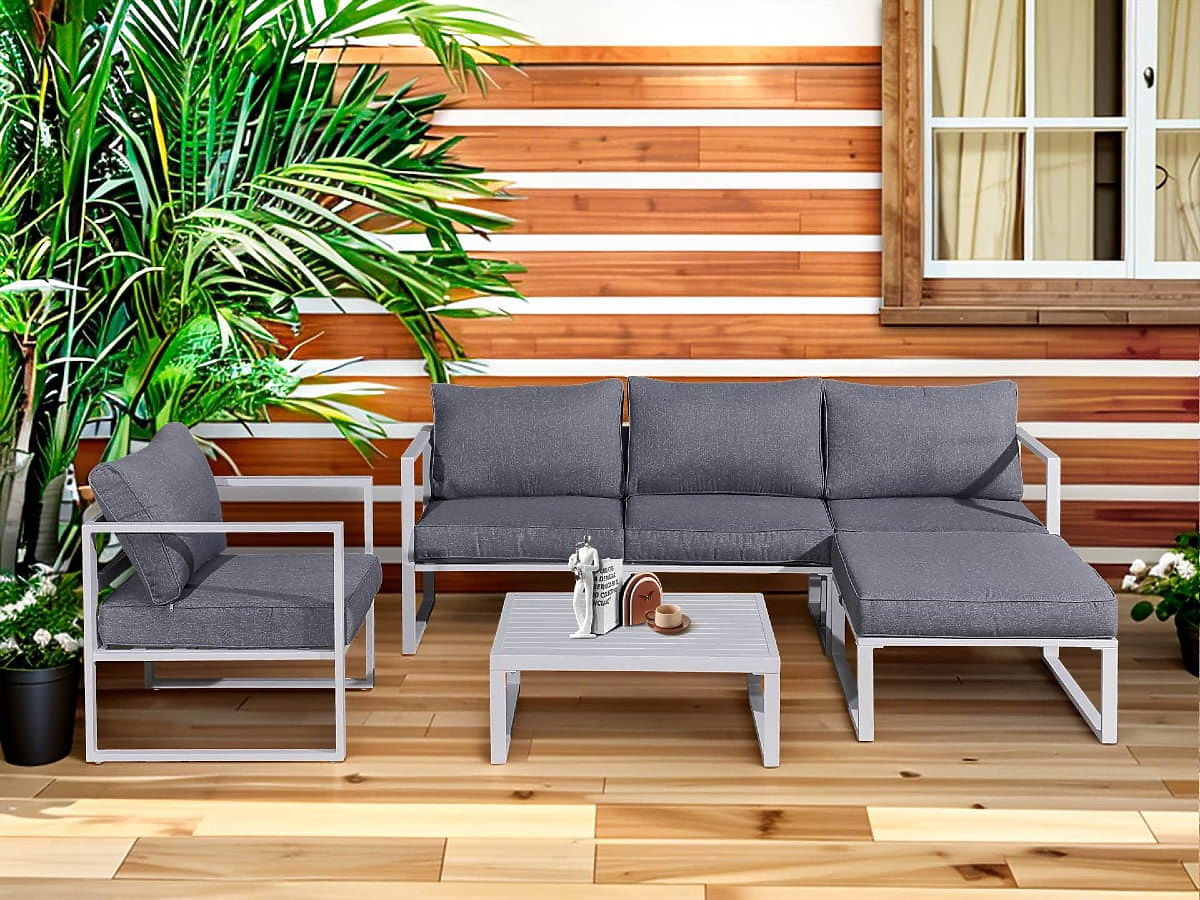 Aluminum Terrace Furniture Set (Sofa 204 cm, Armchair, Ottoman + Table) MOSTRARE White