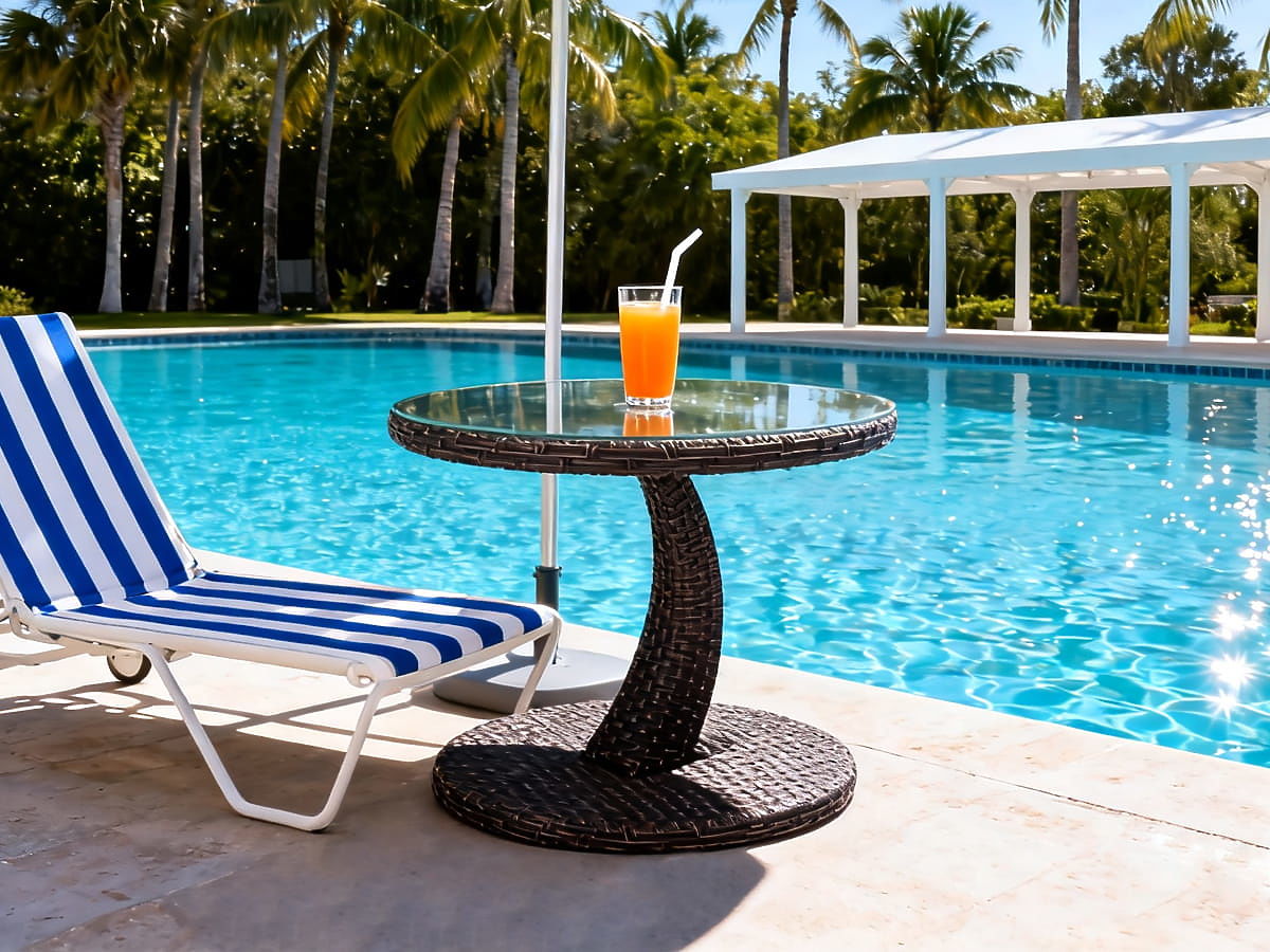 Enhance your relaxation zone with a practical and stylish garden table. This compact furniture piece is the perfect companion for your lounger, chair, or garden sofa. With its universal design, it fits perfectly on a balcony, terrace, or even in a small coffee corner in the garden. The table features a sturdy construction. The use of alu-rattan technology ensures that the furniture is not only durable and stable but also fully resistant to changing weather conditions and easy to clean. Its round top with an optimal diameter of 50 cm provides ample space for a cup of coffee, a book, or a phone, and the height of 43 cm guarantees easy access from the level of most relaxation furniture. Technical specifications: Type of furniture: Coffee table Material: Alu-rattan (aluminum frame with rattan surface) Dimensions: Diameter: 50 cm Height: 43 cm Frame: aluminum with dimensions of 25x11x1.1 mm and 18x18x1.1 mm Surface (Rattan): Weaving with dimensions of 7.5x1.3 mm Type of assembly: KD (construction for self-assembly/disassembly) By choosing our table, you gain not only functional furniture but also an elegant accessory that will highlight the character of your outdoor area. Its durability and timeless appearance make it an investment for many seasons. Enjoy comfort and style in every detail of your garden.