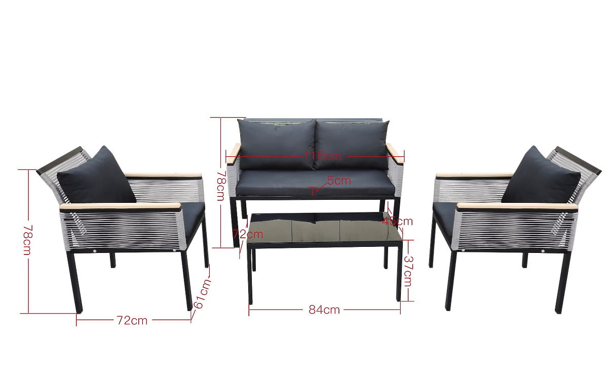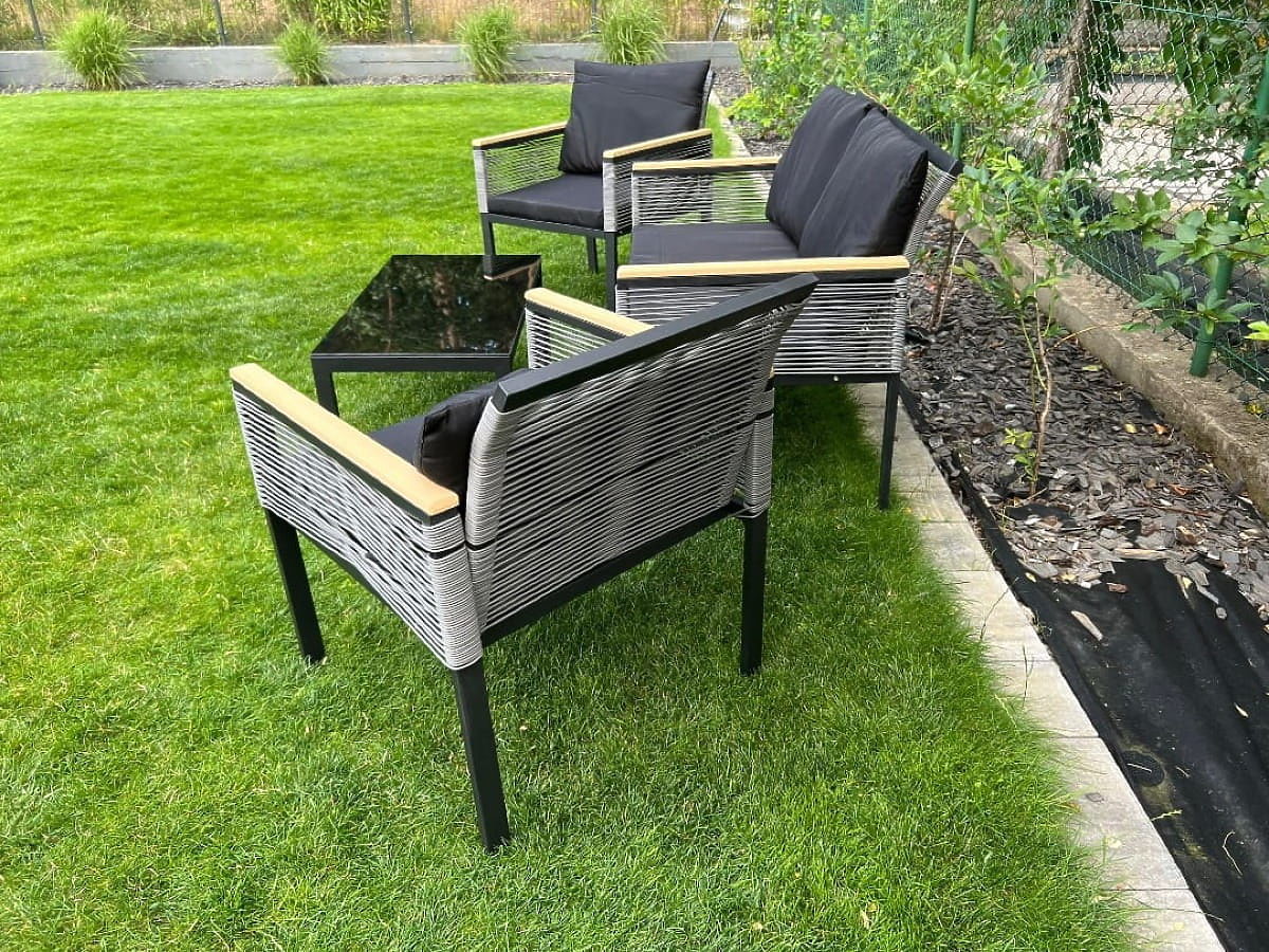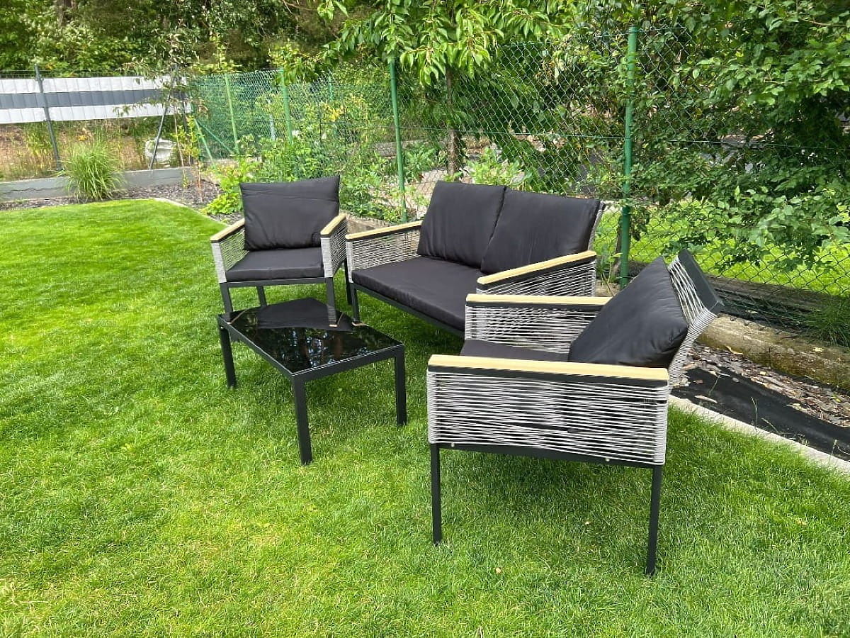 This furniture set is the quintessence of comfort and design, an invitation to create a unique oasis of tranquility in your garden, terrace, or balcony. It is the perfect choice for those who want to transform their outdoor space into a masterpiece of functionality and aesthetics. This exceptionally original set, characterized by its compact format, fits perfectly even in the coziest corners. Made from aluminum, it is weather-resistant, ensuring its phenomenal durability and flawless shine for many years. If you dream of the perfect combination of elegance, reliability, and deep relaxation in the fresh air, this set is a bullseye. It will become an icon of style in your outdoor arrangement, brightening it with unique character and inviting endless moments of relaxation. CORTO set color: black, solid Weave: round technorattan Furniture construction: aluminum (requires simple assembly) Armrests finished with polywood The set consists of 4 elements (after assembly): 2 x chair: width: 61 cm depth: 72 cm height: 78 cm 1 x sofa: width: 116 cm depth: 72 cm height: 78 cm 1 x table (polywood top): length: 84 cm width: 45 cm height: 37 cm Black cushions included in the set (3 pcs for seats, 4 pcs for backrests). All have removable covers with zippers, made from outdoor material (100% polyester), which can be washed at low temperatures. The cushion covers are sewn from high-quality fabric coated with Teflon, protecting them from moisture. The cushion filling is made from high-quality upholstery foam (medium-hard - T25), preventing deformation. Cushion thickness: 5 cm Option to sew cushions to order for this set: https://www.bg-meble.pl/pl/p/Usluga-Krawiecka-Poduszki-Na-Zamowienie-/742 Option to sew cushion covers to order for this set: https://www.bg-meble.pl/pl/p/Usluga-Krawiecka-Poszewki-Na-Zamowienie/743 Option to order only the complete set. Set for self-assembly according to the included instructions. A complete set of screws and keys is included with the set. Technorattan is resistant to harmful weather effects, but for even longer preservation of the unchanged appearance of the furniture, we recommend purchasing a protective cover. The cover in dark gray is one-piece and has a drawstring at the bottom, threaded through metal eyelets. All covers are custom-made, and the delivery time is approximately 14 working days. Imagine garden furniture that exceeds your expectations in every way – from durability to design. Here is BELLO GIARDINO, where every detail matters and luxury meets functionality: Timeless quality: Our synthetic rattan guarantees that the furniture will last for years without losing its beauty or durability. Weather resistance: Our furniture withstands the most demanding weather conditions, from scorching sun to freezing winters, remaining beautiful. Luxurious comfort: Thick, soft cushions invite relaxation, offering comfort that is hard to find elsewhere. Lightness and strength: The aluminum construction combines the best of both worlds – it is lightweight yet exceptionally stable. Design that enchants: Every element of our furniture is designed with aesthetics and functionality in mind, to fit into any environment. Whether you are a fan of minimalism or appreciate rich, elegant arrangements, our furniture will meet your expectations, surpassing the boundaries of ordinary functionality and aesthetics. We ensure that even the most demanding customers will not resist the comfort and style offered by BELLO GIARDINO. Turn your garden, terrace, or balcony into an oasis of relaxation and elegance that you have always wanted. Don't wait, discover BELLO GIARDINO today and transform your outdoor spaces into the places you've always dreamed of.