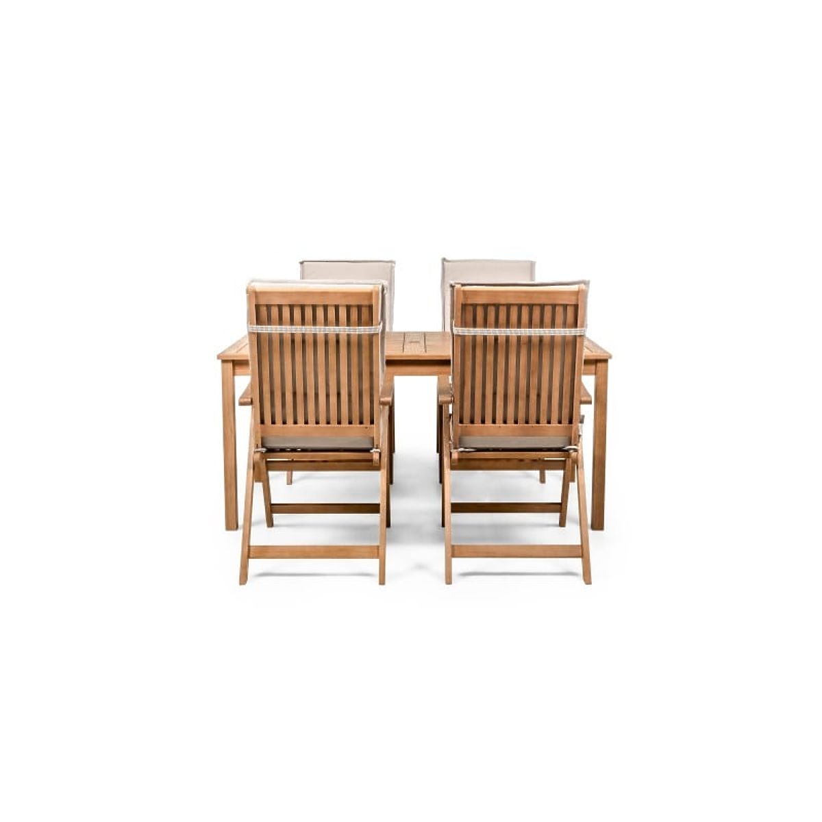 Lukahome.eu » Garden furniture / Garden sets / Garden Set Familis Table 160 cm + 4 Chairs with Adjustable Backrests and Light Gray Cushions