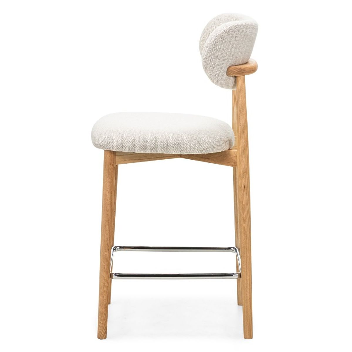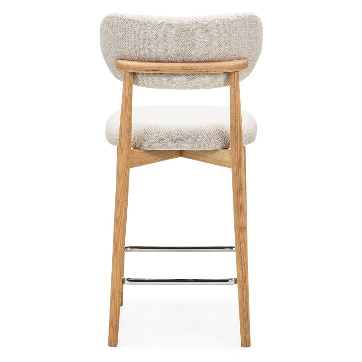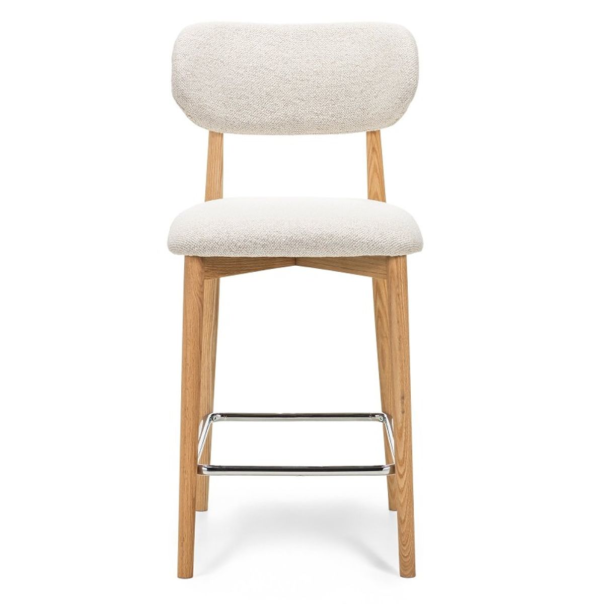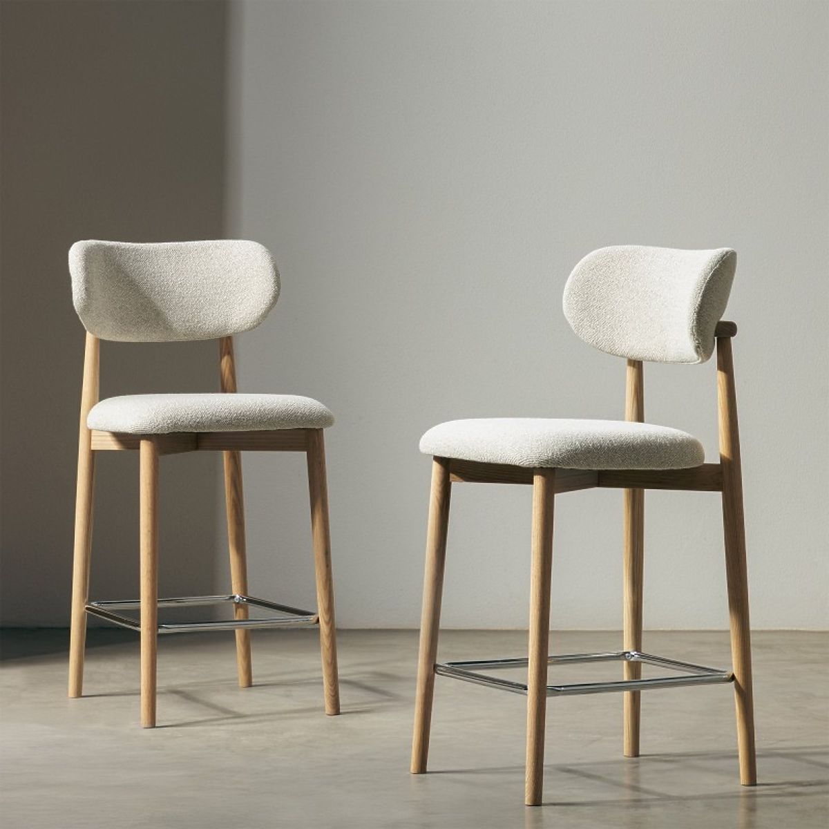 Elegant cream bar stool with oak legs and soft upholstery. .. more
