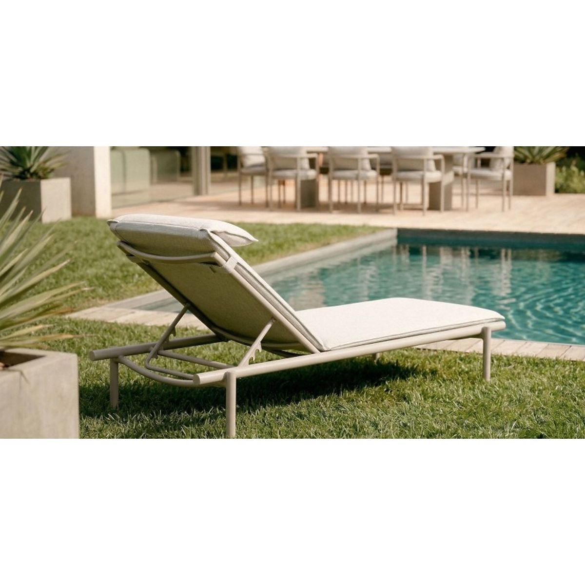 Amarello offers modern relaxation in the garden. The lightweight aluminum frame combines durability with elegance, and the precisely tailored cushions provide soft, enveloping support. Minimalist form, maximum comfort in every moment of rest.