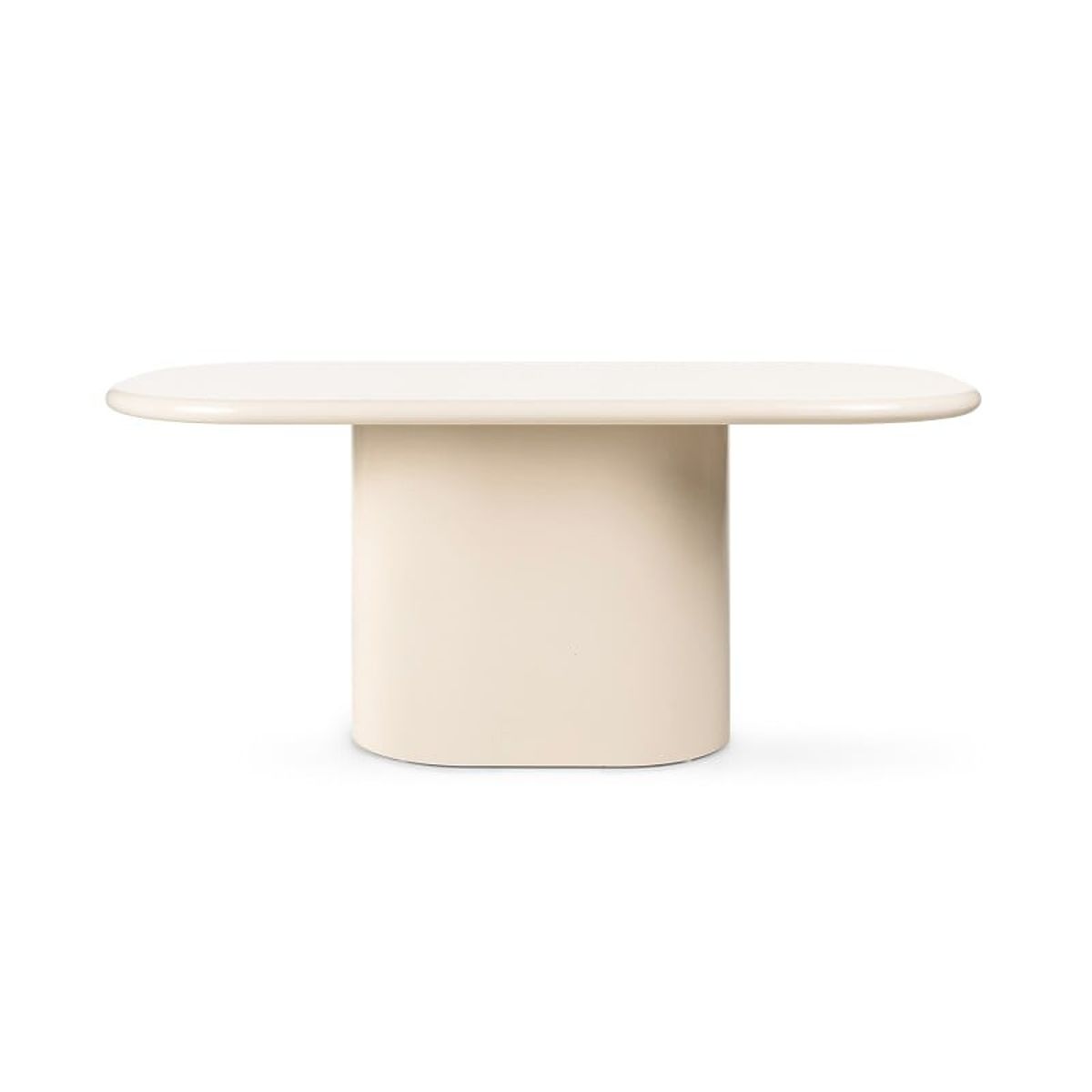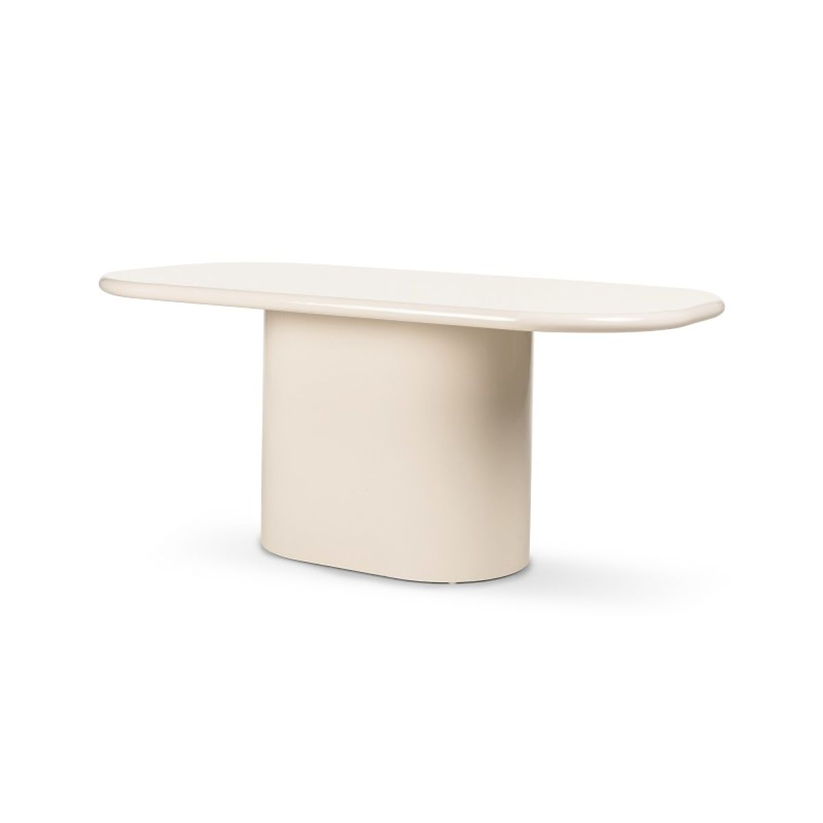 Elegant 180 cm light beige dining table with a glossy oval top. .. more