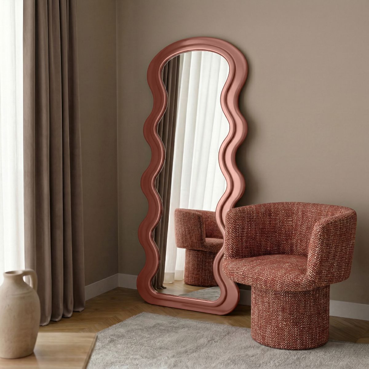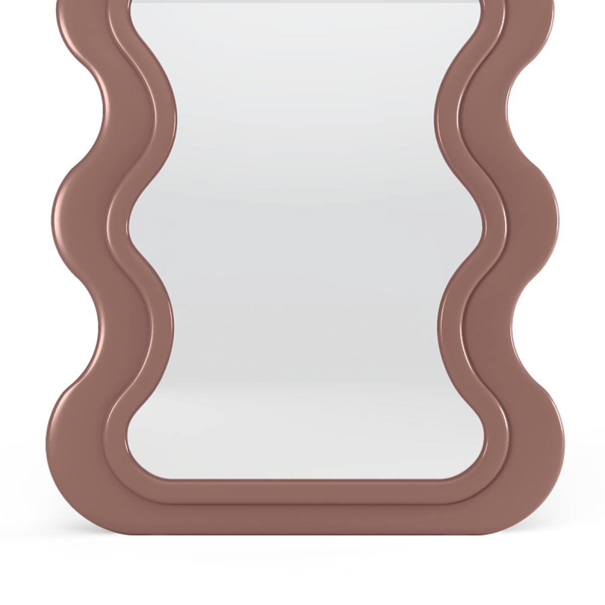 Wavy wooden frame mirror with organic shape, mocha color. .. more