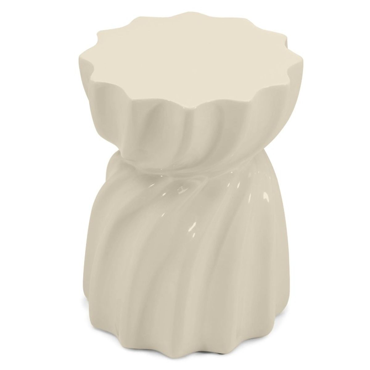 Wavy structure side table with a high-gloss beige finish. .. more