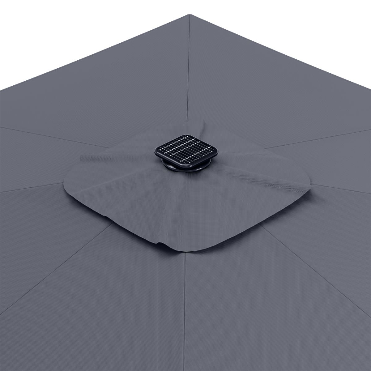 Rotatable garden parasol with solar LED lighting and durable construction. .. more