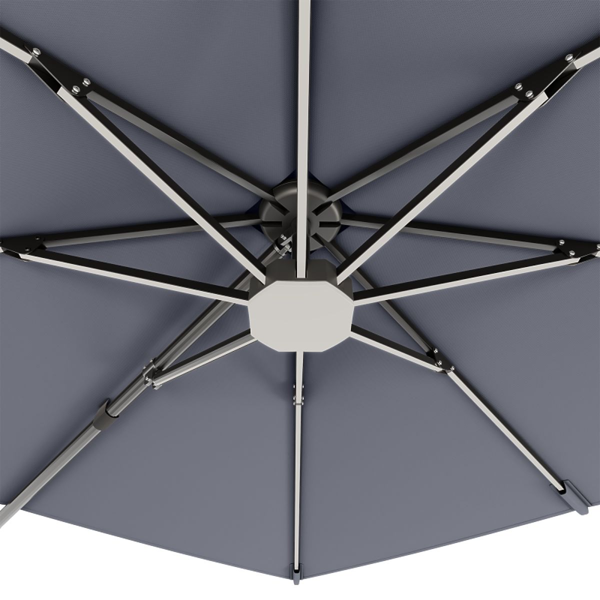 The Shade Deluxe parasol gives you full control over relaxation – with 360° rotation and adjustable tilt angle ensuring shade exactly where you need it. The solar LED lighting allows you to enjoy evening relaxation in pleasant light, while the sturdy construction and durable cover guarantee comfort and longevity for many years.