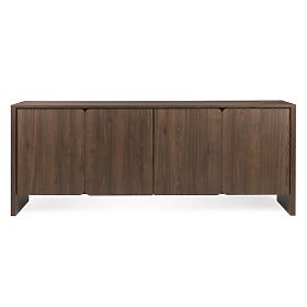 The four-door sideboard Moku combines minimalist design with functionality. The unique rounding of the front surfaces and the walnut villa color give it lightness and elegance, making it suitable for any interior.