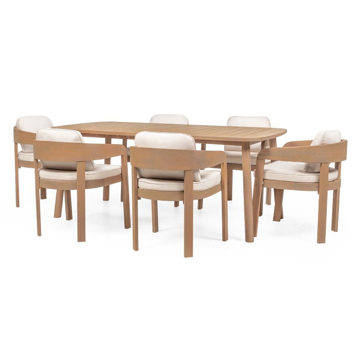 Lukahome.eu » Garden furniture / Garden sets / Garden Set Satori, Table 183 cm + 6 Chairs, FSC Acacia Wood, Teak Look, Beige, Rounded