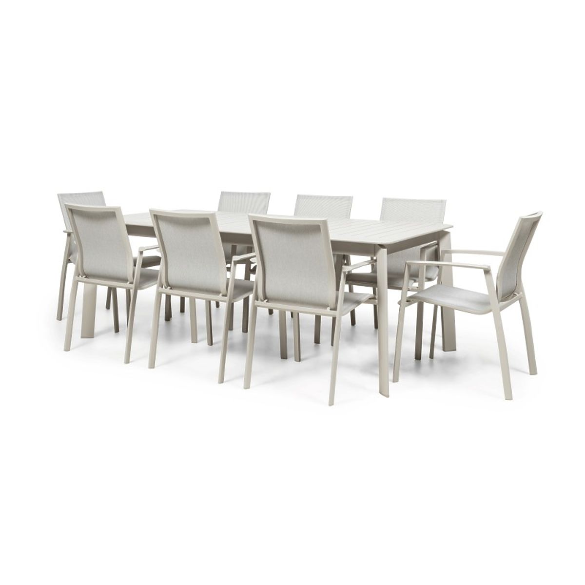 Lukahome.eu » Garden furniture / Garden sets / Garden Set Canelli, Extendable Table 205-286 cm + 8 Chairs, Aluminum, Light Beige