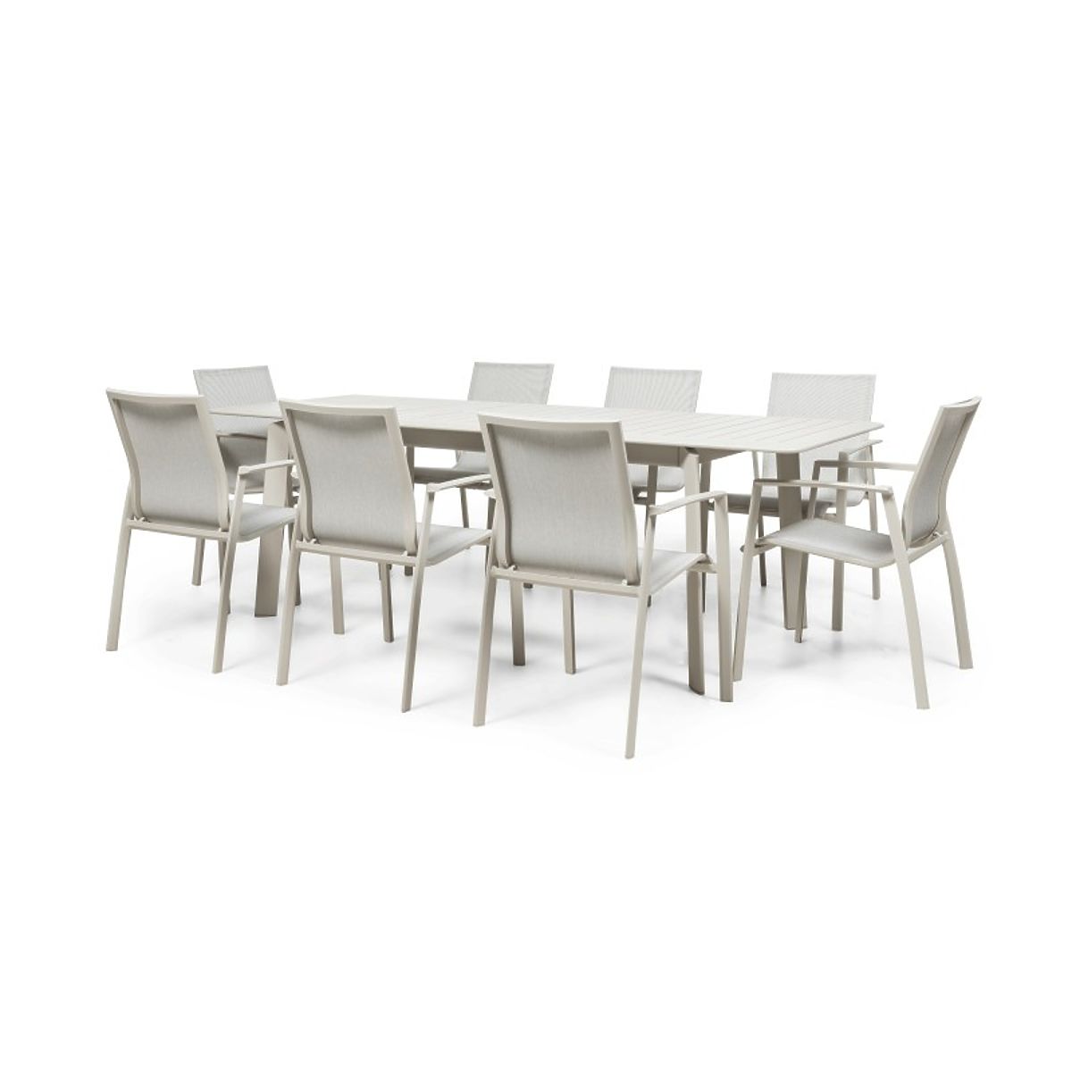 Lukahome.eu » Garden furniture / Garden sets / Garden Set Canelli, Extendable Table 175-234 cm + 8 Chairs, Aluminum, Light Beige