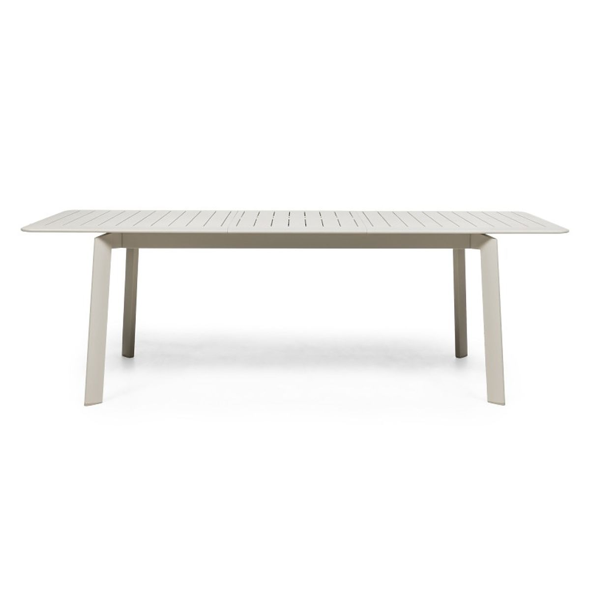 Extendable garden set with aluminum frame and light beige finish. .. more