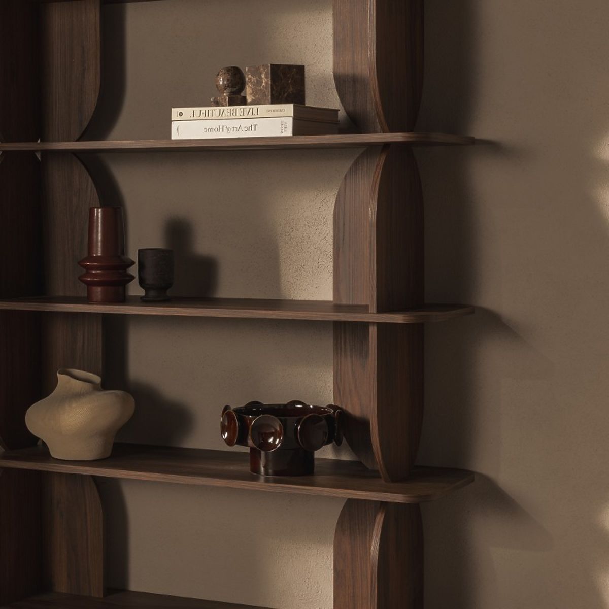 Tall Loocky Shelf, Rounded, Warmia Walnut